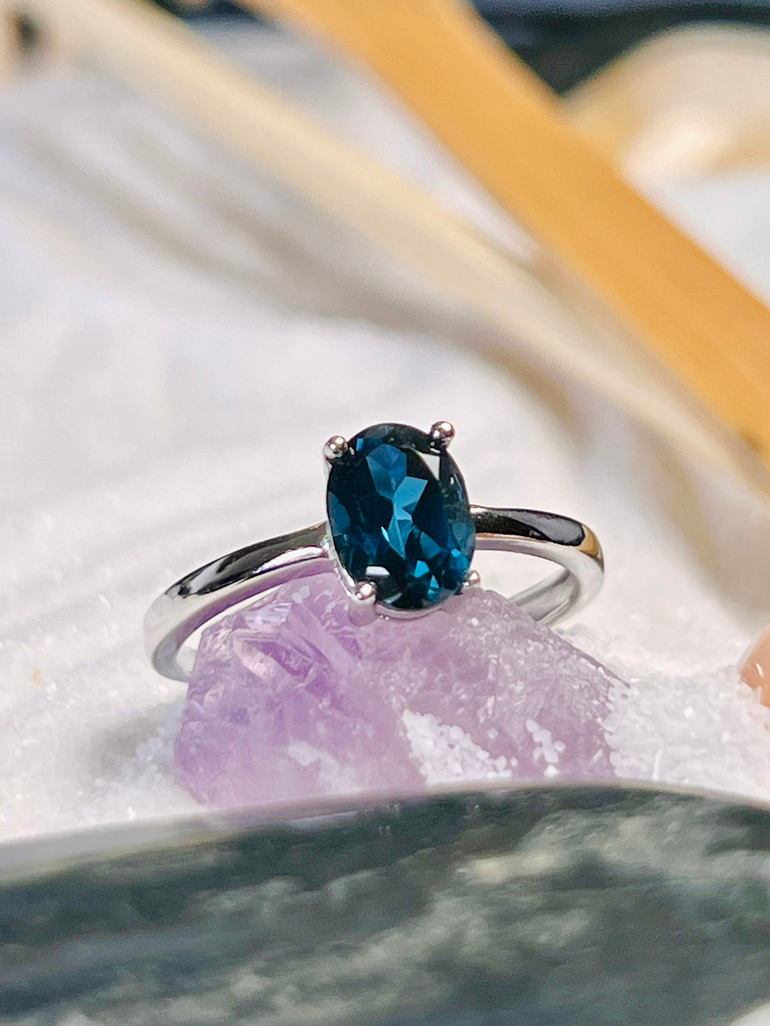 Grade AAA London Blue Topaz Ring, 925 Silver Open Band Ring, 2 Carats, December Birthstone