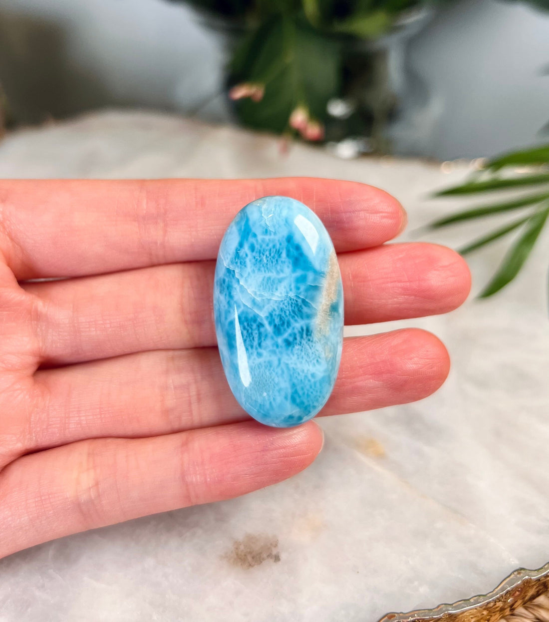 Grade AA+ Natural Larimar Oval Cabochon, Energy Healing Crystal, Good Luck 14g, 38mm*21mm*8mm