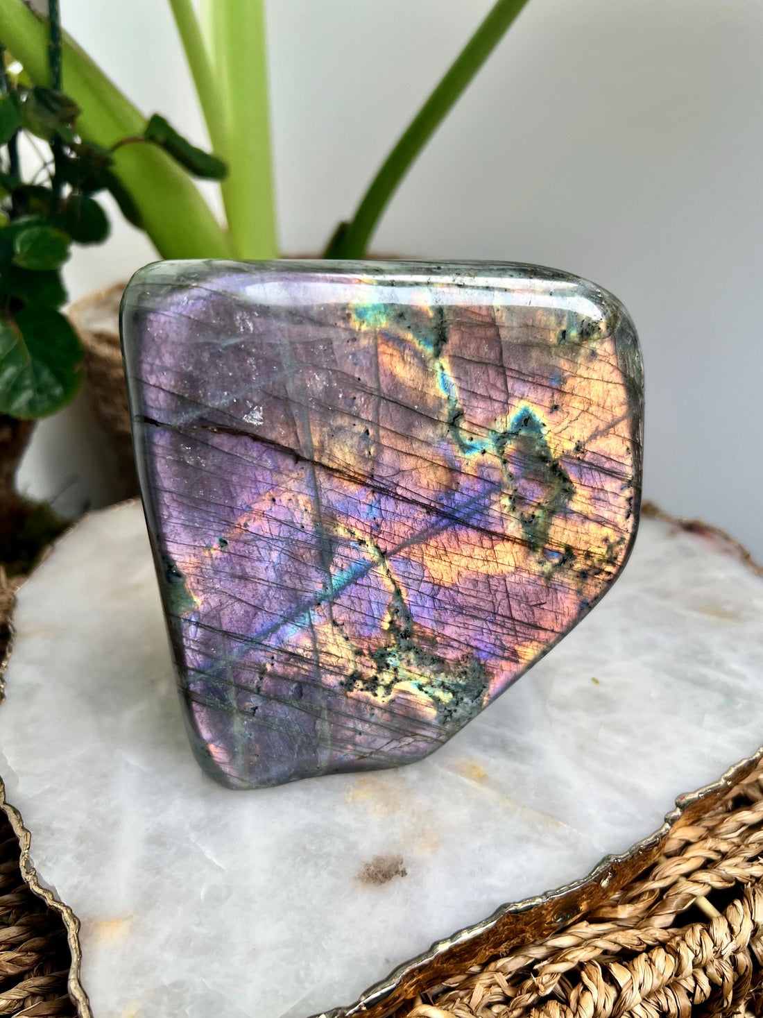 Rare Dual-Colour Grade AAA Purple and Teal Blue Labradorite Freeform from Madagascar, The Magician Stone, 1.003kg