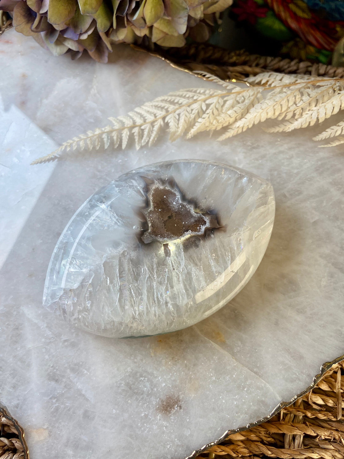 Grade AAA Large Natural Agate with Clear Quartz Geode Moon, Crystal Decor, Energy Protection, House Blessing, Moon Ritual