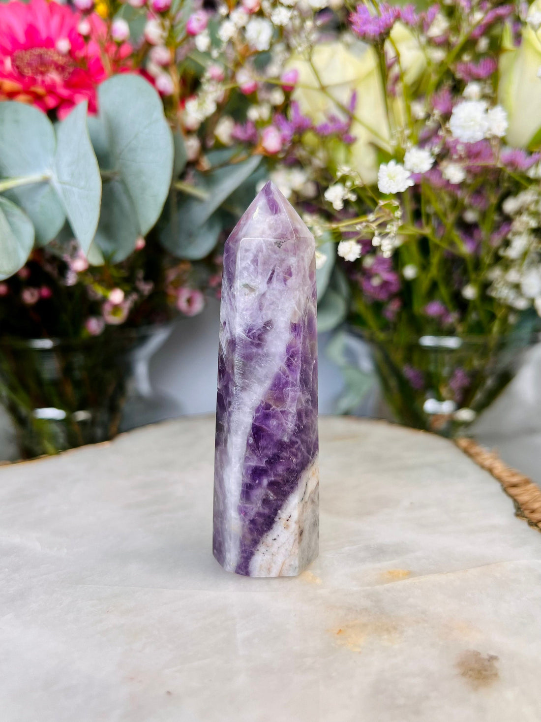 Natural Dream Amethyst Tower,Amethyst with White Quartz, Energy Balance, Crystal Healing Home Decor 60g