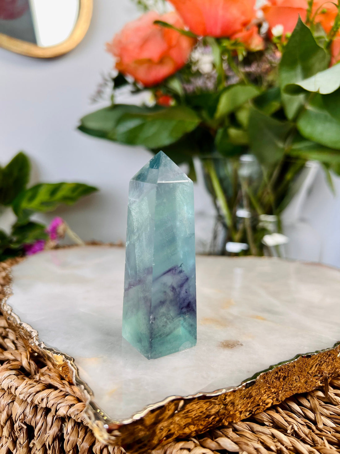 Grade AAA Phantom Rainbow Fluorite Tower, Green Purple Fluorite, 85g, Healing Crystal Home Decor