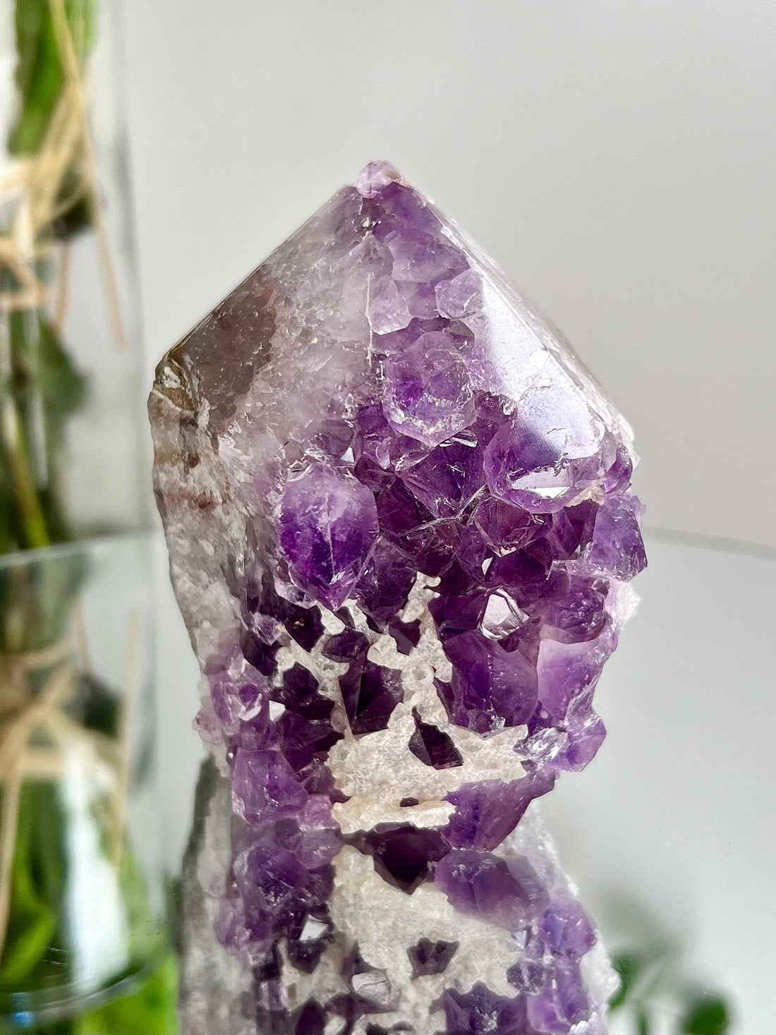 Grade AA+ Natural Brazilian Amethyst Geode Cutbase Tower with Calcite, crystal healing home decor 394g ACT26