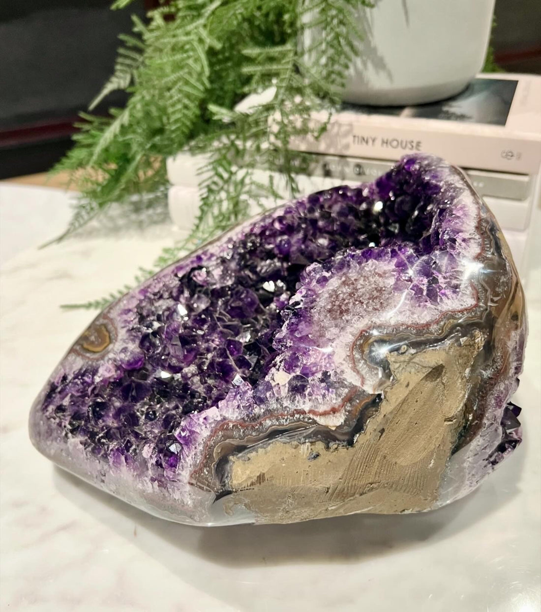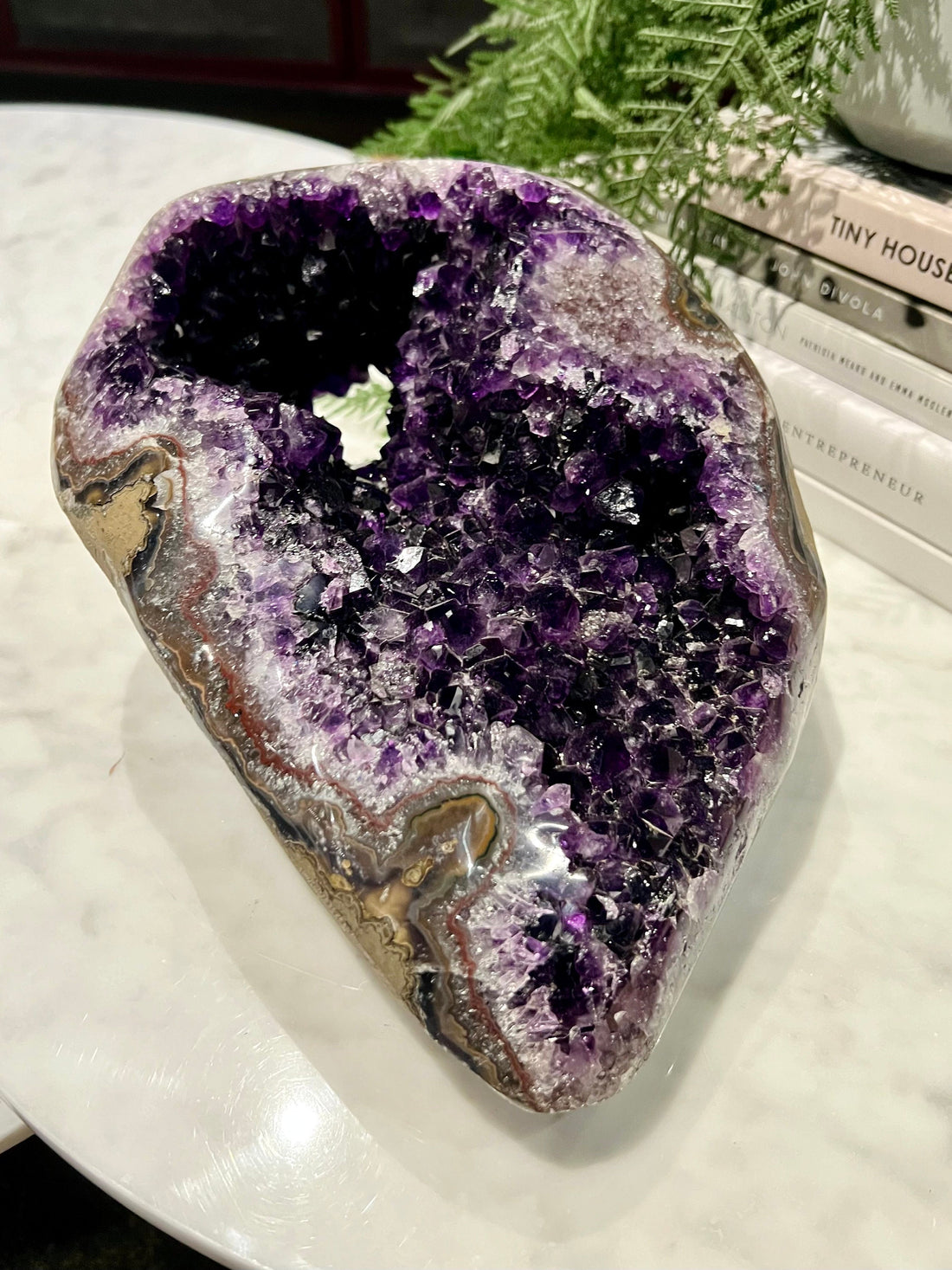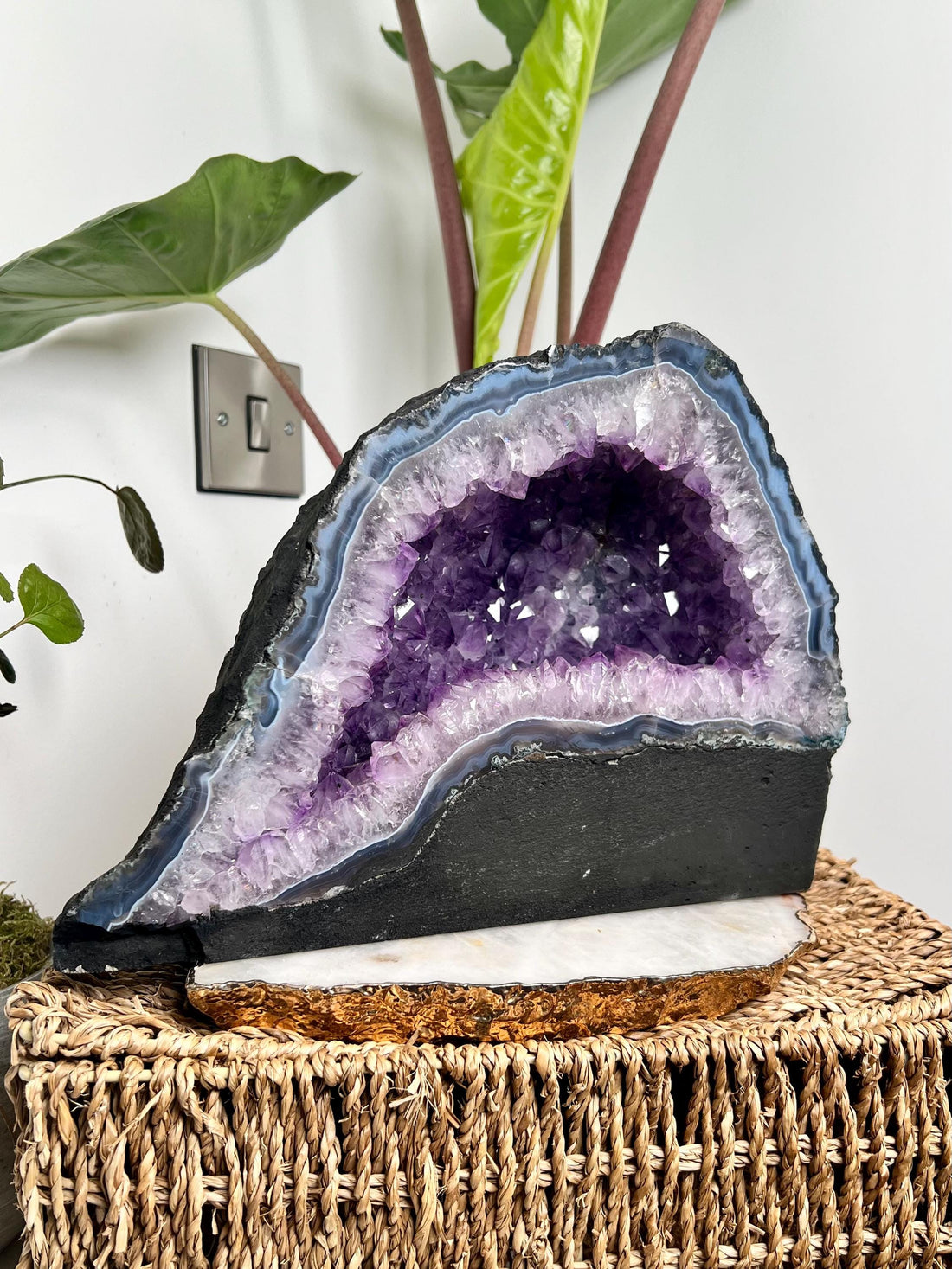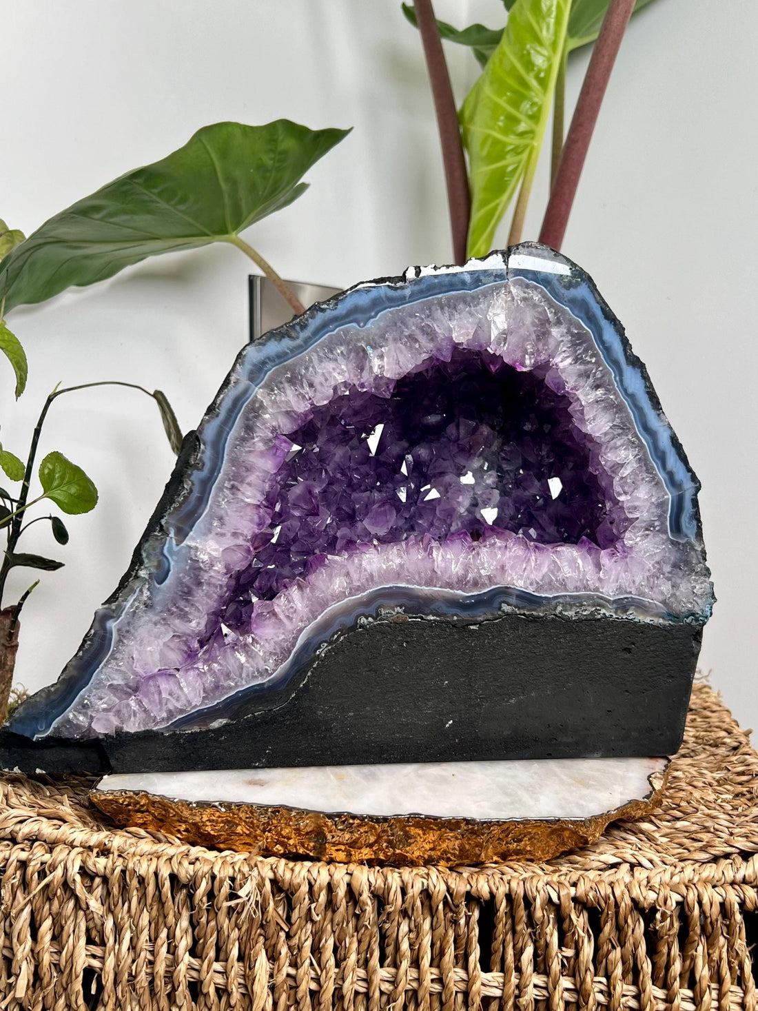 Grade AA Natural Brazilian Amethyst Geode with Lace Agate Lining – Statement Crystal, Akashic Record Channel, 8.7kg