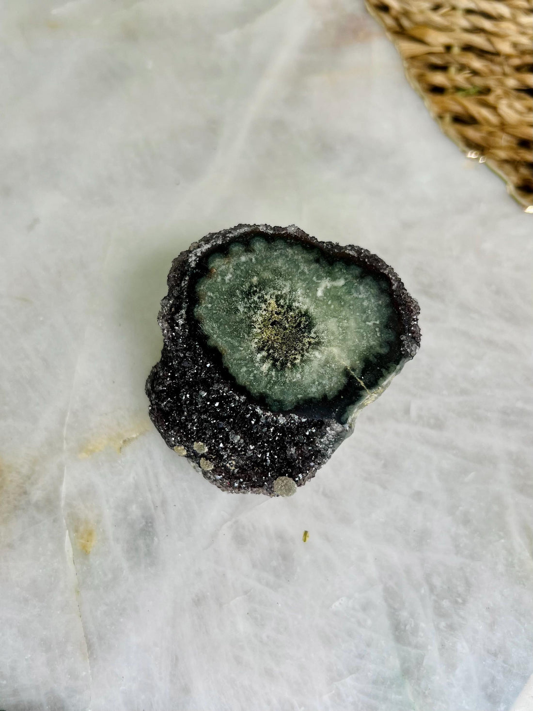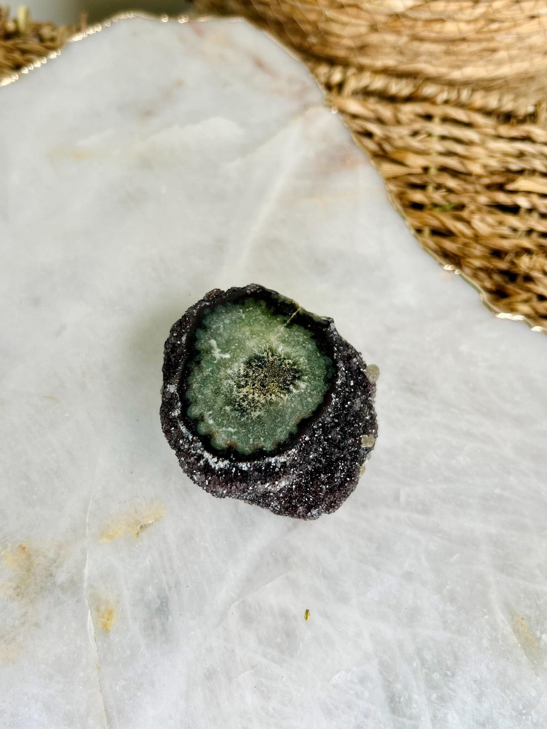 ✨ Features: Grade AA Red Jasper Druzy with a unique Green Stalactite Eye Often referred...