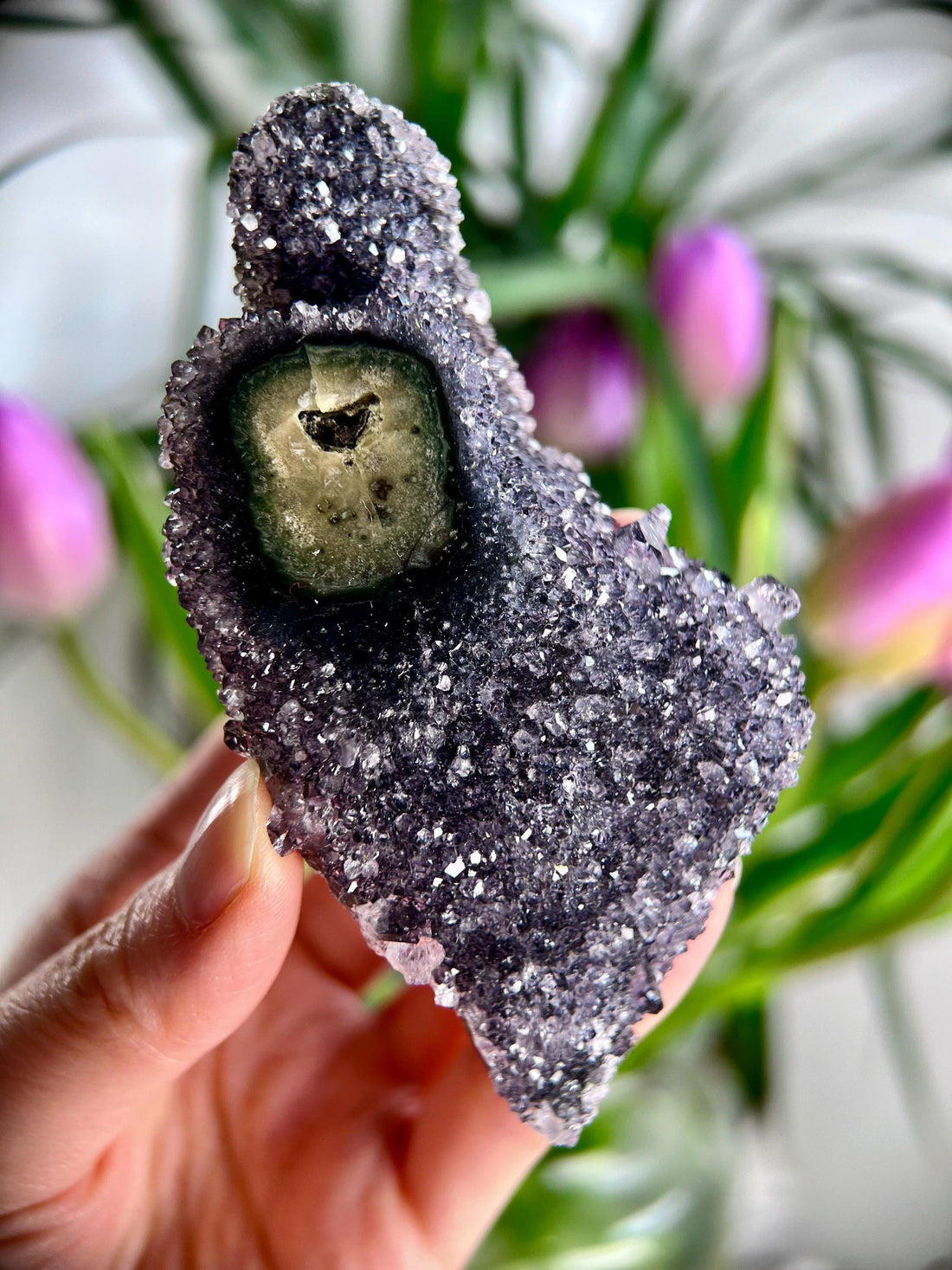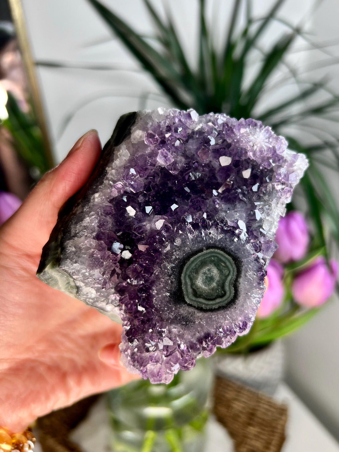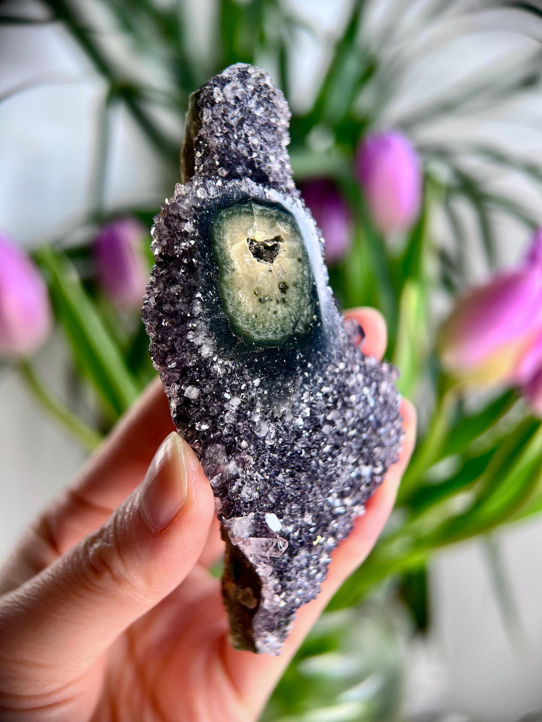 Grade AA Natural Amethyst Flower Stalactite Eye from Uruguay – Unique Formation, High-Energy Healing Crystal - US61, 459g