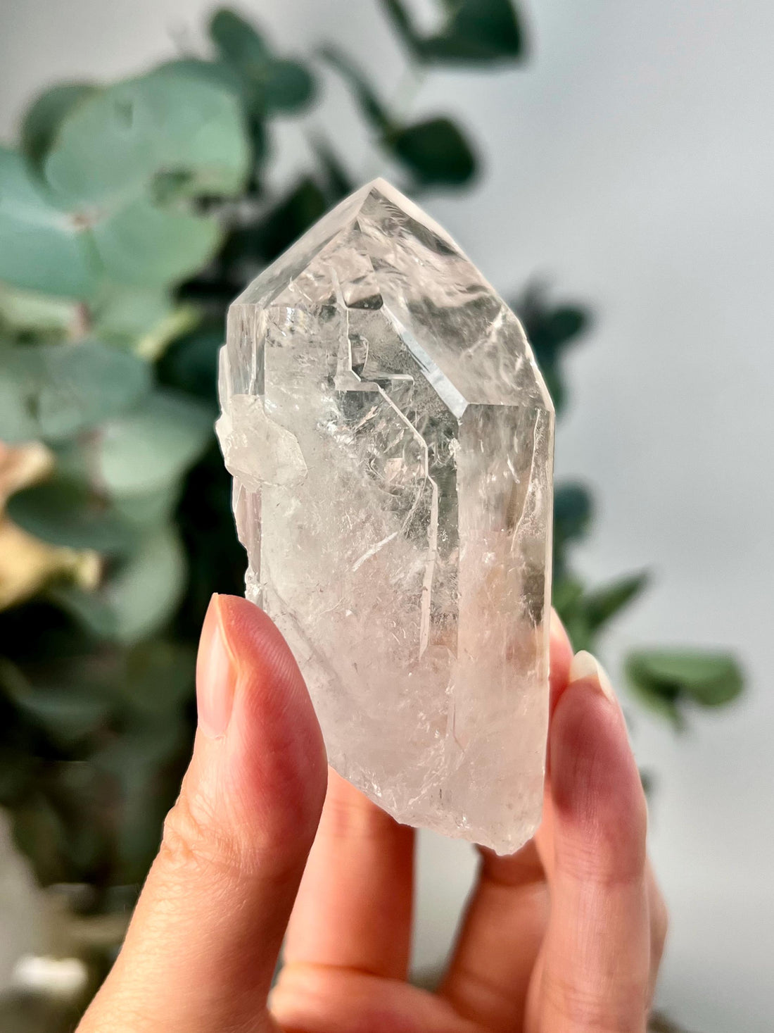 Grade AA Natural Clear Quartz Point with Dolphin Point formation - Unpolished QPC13, 105g