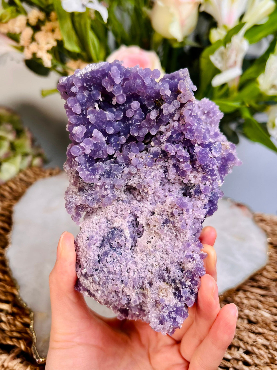 Grade AAA+ Natural Grape Agate from Indonesia, 365g, Natural Velvet Shine Bubbles in Real life, Healing Crystal Home Decor