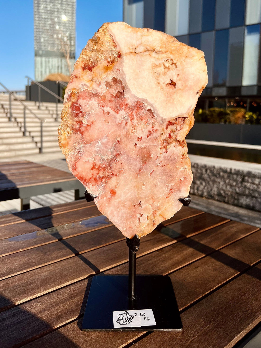 Grade AAA Pink Amethyst Slab on Stand, Full body Sparkle, Ametrine Inclusion, Meditation,Bedroom Crystal 2.6kg