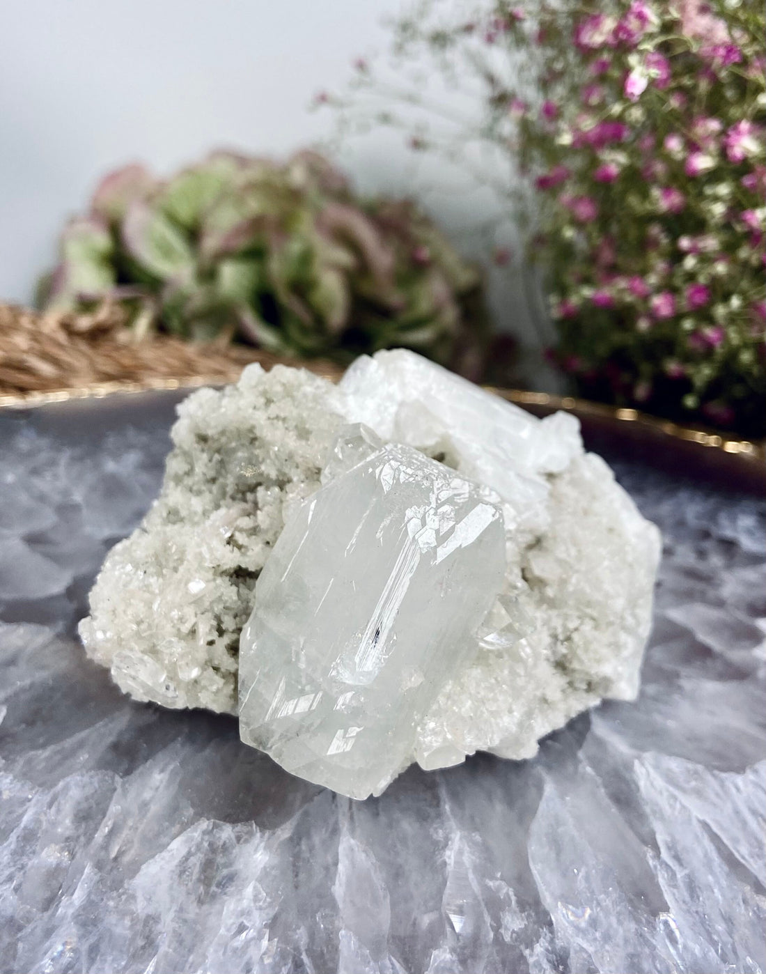 Grade AAA Natural Terminated Apophyllite Specimen from India, Crystal Healing Home Decor 132g