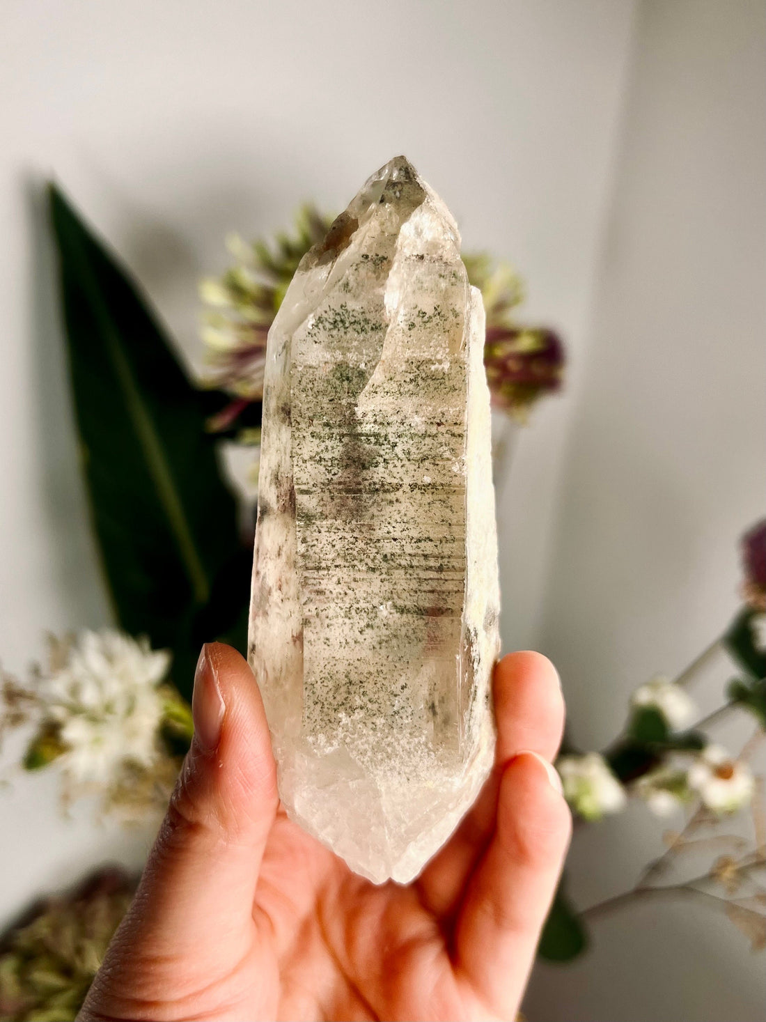 AAA Natural Chlorite Lemurian Quartz 152g, Self Healed, Starseed Quartz Wand, Extra Quality CS06
