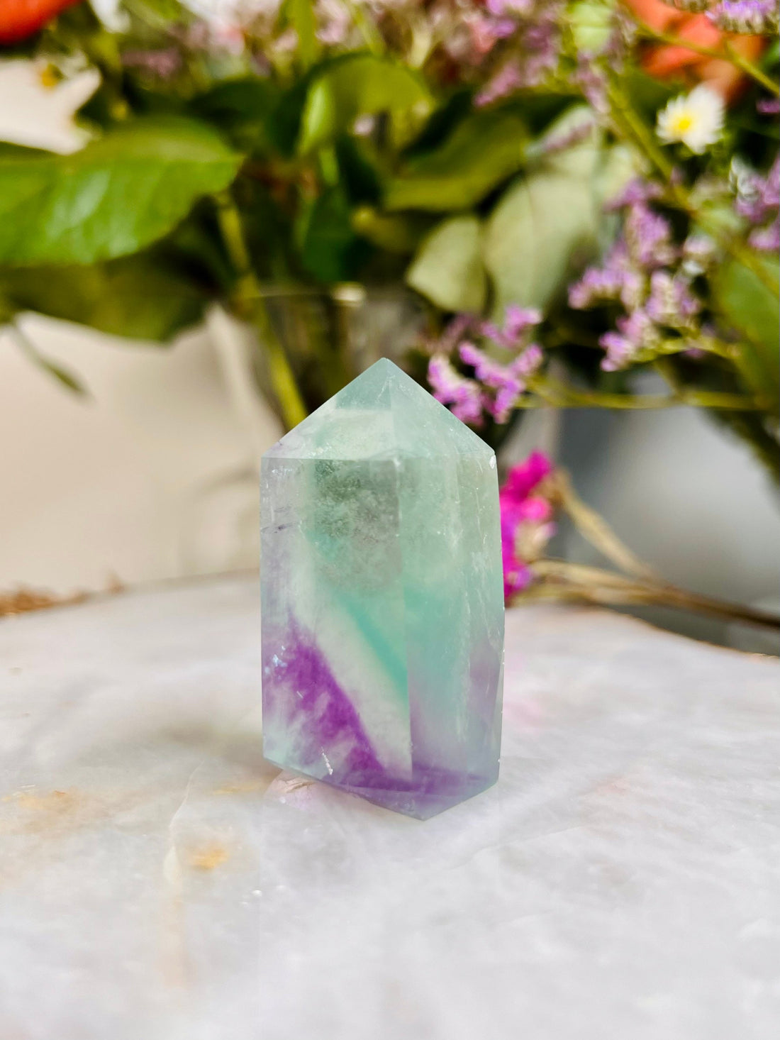 Grade AAA Rainbow Fluorite Tower, Green Purple Fluorite, Gem Quality, Healing Crystal Home Decor 65g