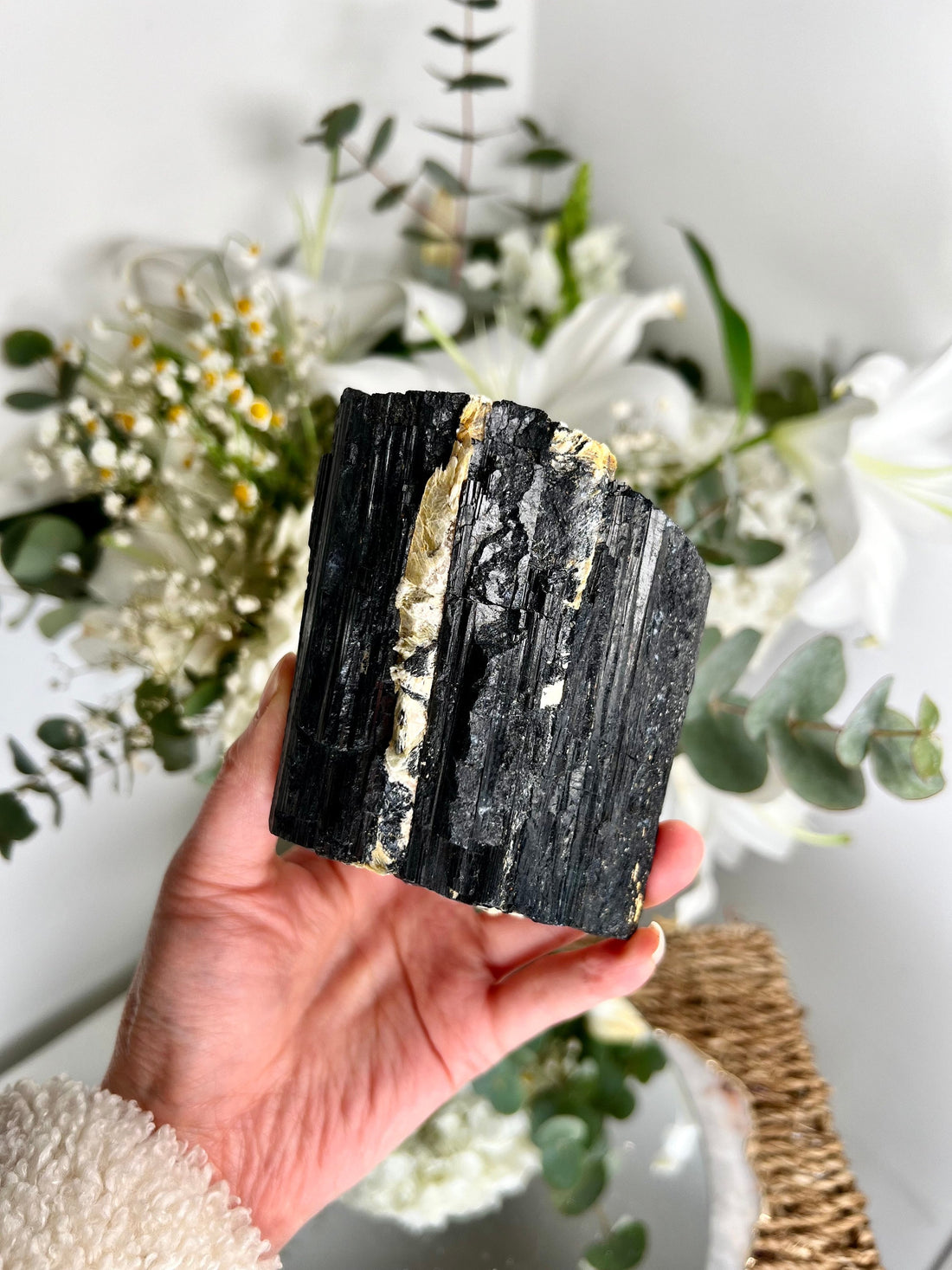Grade A+ Raw Black Tourmaline Specimen - The Ultimate Shield for Energy Purification, Grounding & EMF Protection 546g BTG12