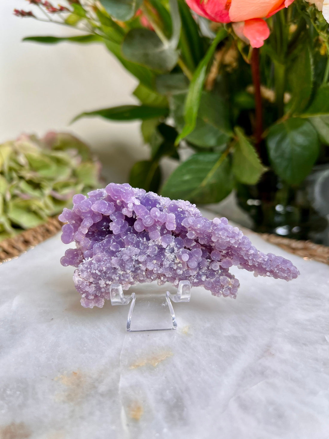 Grade AAA Natural Grape Agate Sphere on Stand from Indonesia, 194g Natural Velvet Sugar Shine Bubbles, Healing Crystal Home Decor