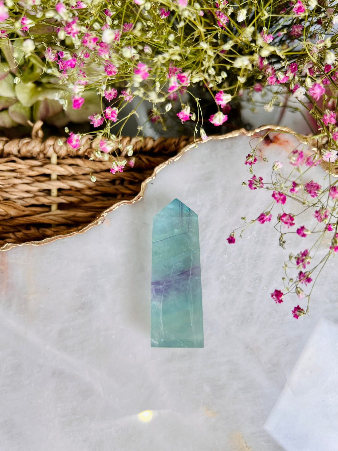 Grade AAA Rainbow Fluorite Tower 51g Green Purple Fluorite, Crystal healing Home Decor, DISCOUNT for minor polishing imperfection