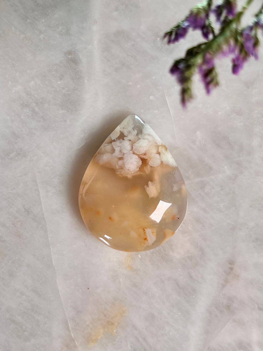 Grade AAA Natural Flower Agate Cabochon, Crystal Healing, Teardrop Cabochon 19g