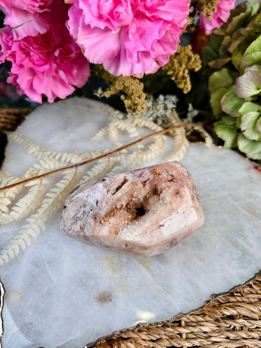 Grade AAA Pink Amethyst Tower with Druzy Geode, Soothing Energy & Divine Femininity 99g PET11
