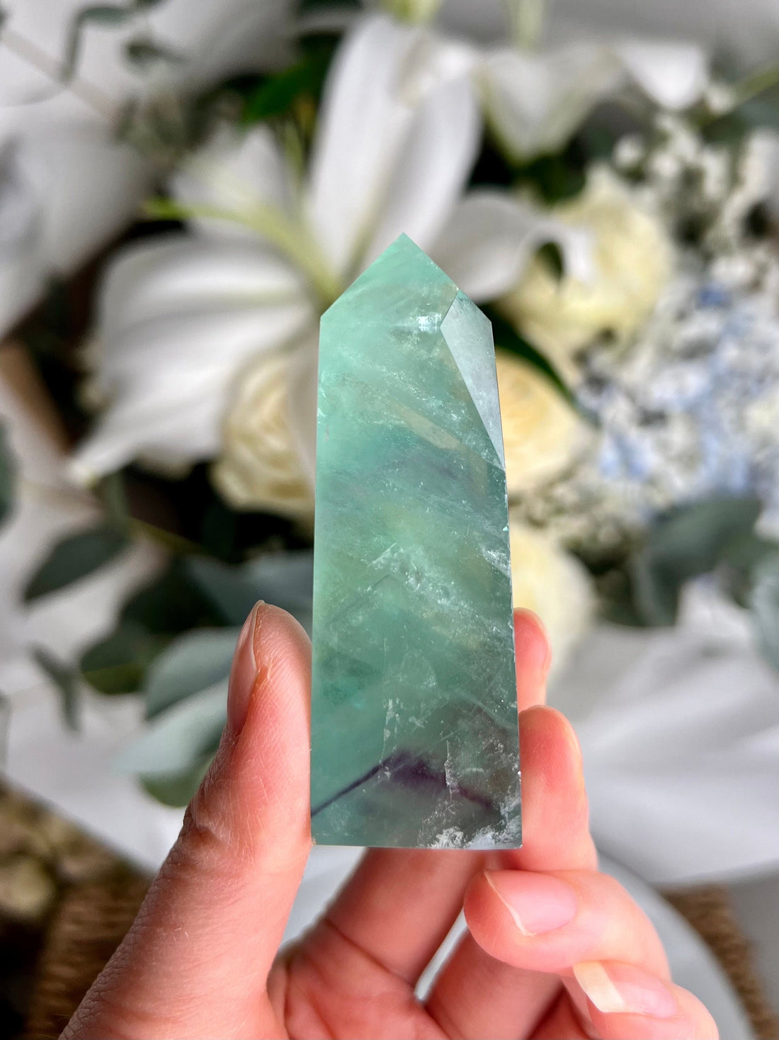 Grade AAA Rainbow Fluorite Tower 82g, Green Purple Fluorite, Crystal Healing Home Decor