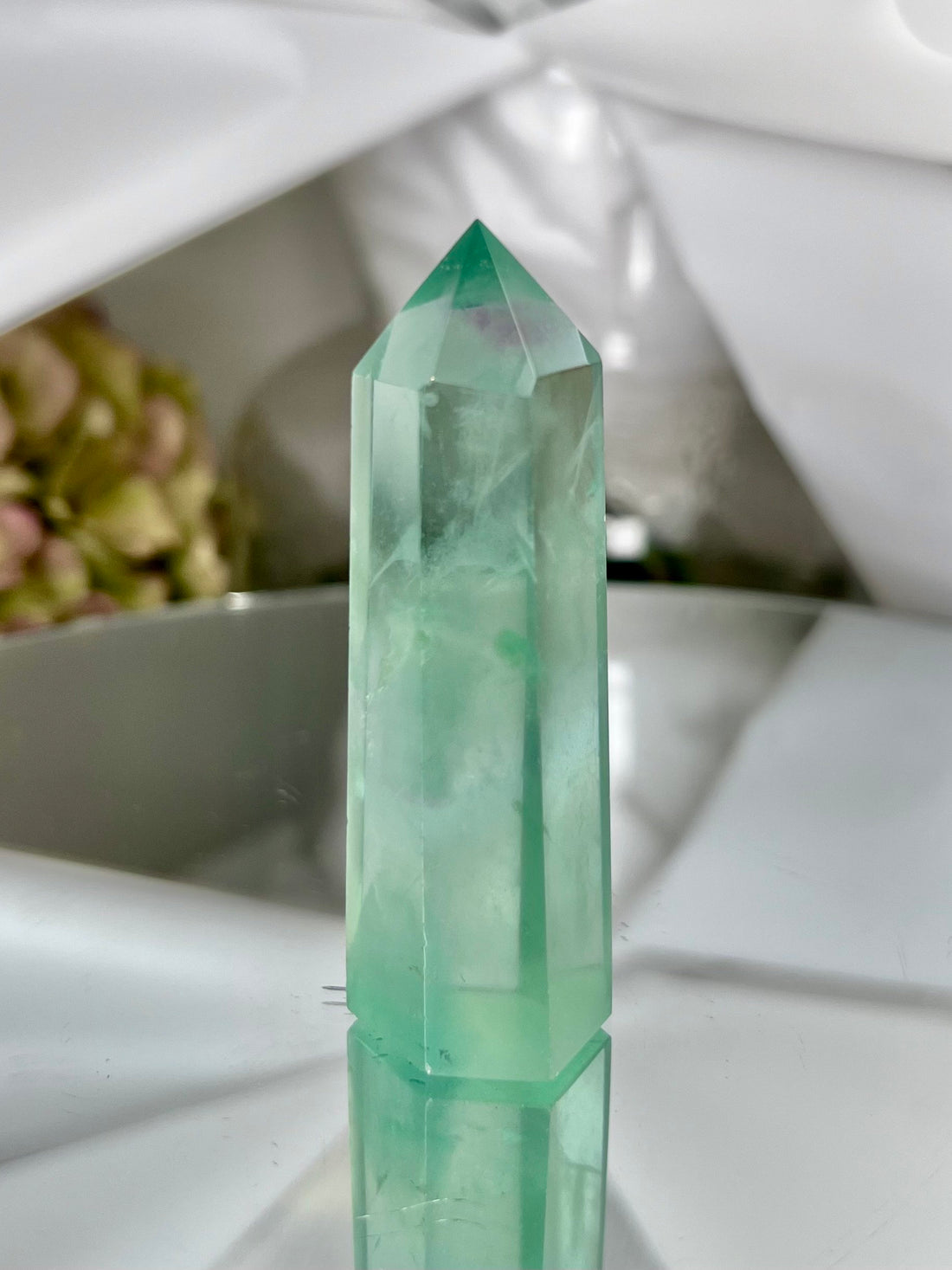 Grade AAA Rainbow Fluorite Tower with Rainbows 89g, Green Purple Fluorite Obelisk, Healing Crystal Home Decor FLT07