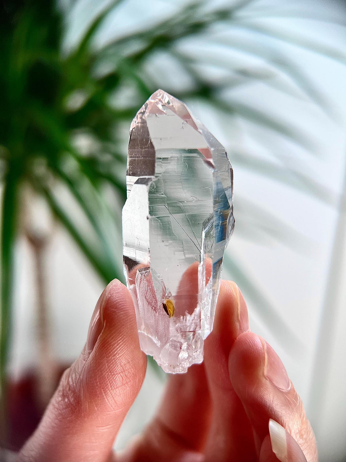 Grade AAA Self-healed Cathedral Lemurian Quartz Point with Iron and Black Needle Rutile, from Diamantina, Brazil- LCC29, 32g