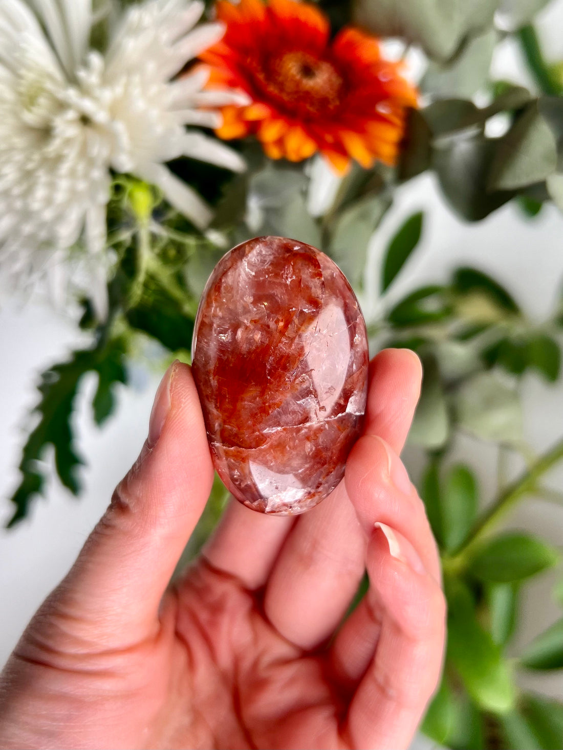 Grade A Natural Fire Quartz Palmstone with Rainbow - The Spark of Creativity and Emotional Rejuvenation, FPQ25 46g