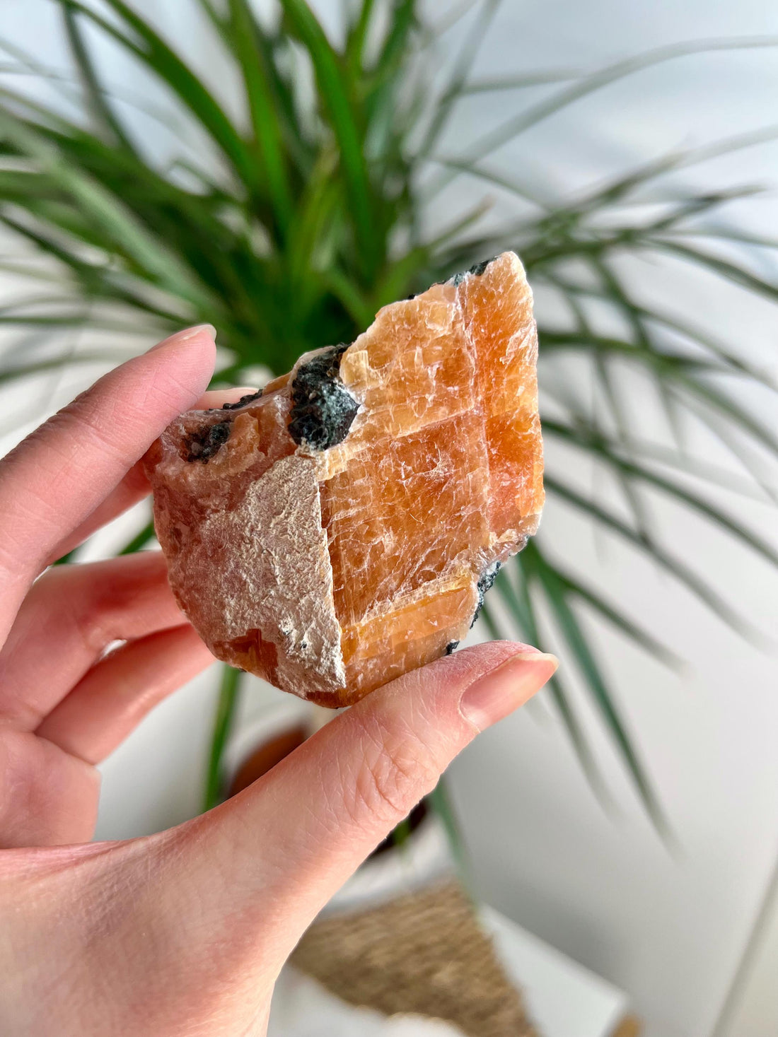 Grade A Natural Orange Calcite with Apatite, Raw Crystal, Sacral, Solar Plexus, and Third Eye Chakra, from Bahia Brazil CA04, 100g