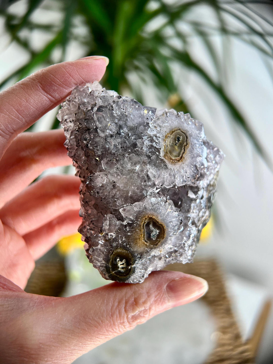 Grade A Natural Agate Druzy Stalactite – Crystal Flower Formation, Rare Uruguay Specimen for Heart Healing & Energy Balance – US97, 180g