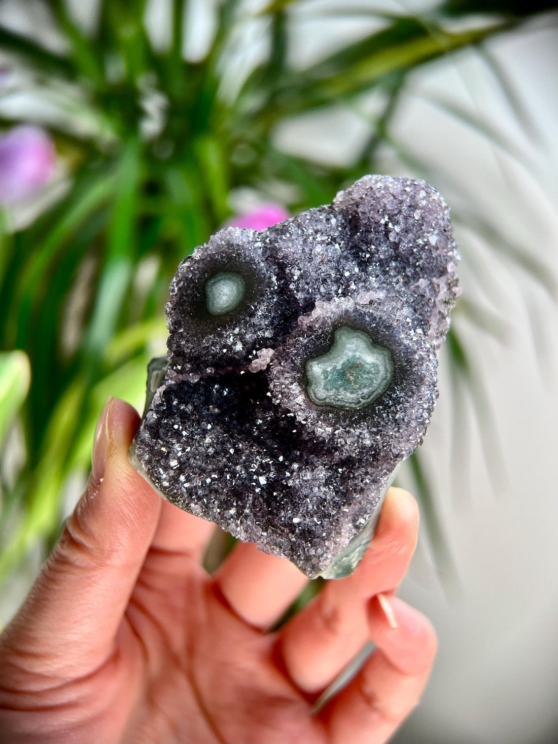✨ Features: Grade AA Natural Dark Druzy Quartz Unique Stalactite Eye formation Rare Rainbow Amethyst...