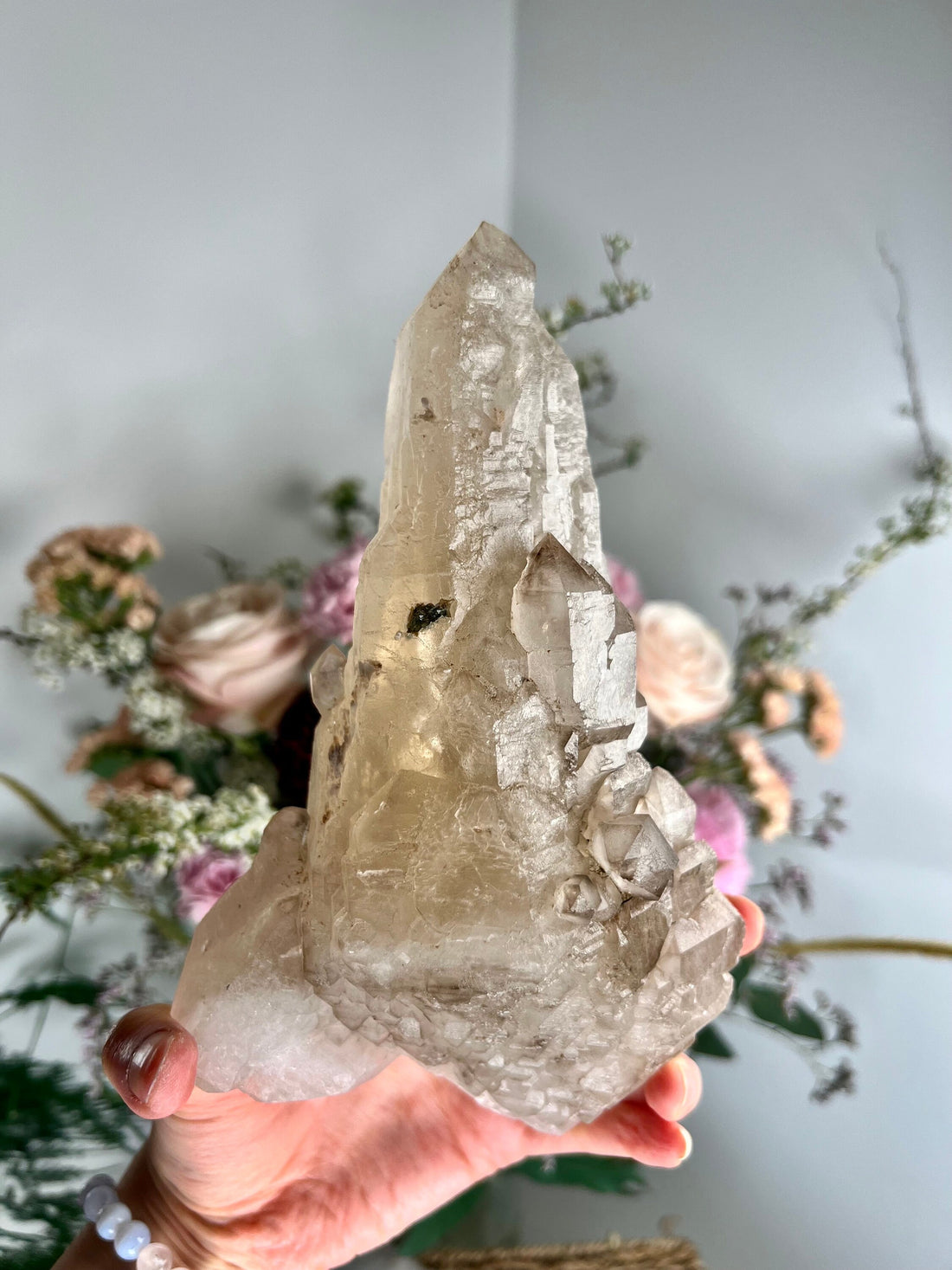 Large Extra Quality Natural Elestial Citrine with Smoky Quartz and Blue Tara 1.3Kg, EQC03