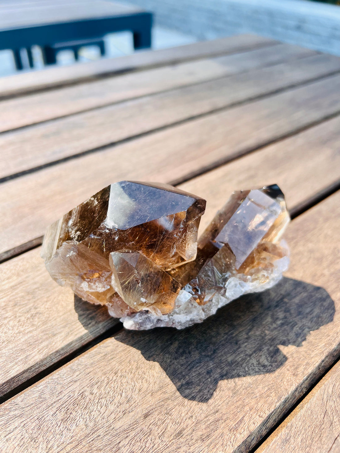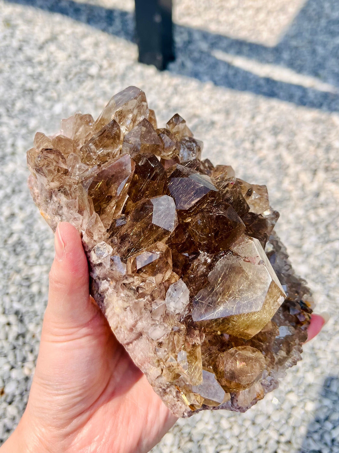 Grade AAA Natural Smoky Golden Rutile Quartz Cluster, Smoky Quartz with Titanium Rutile 1152g