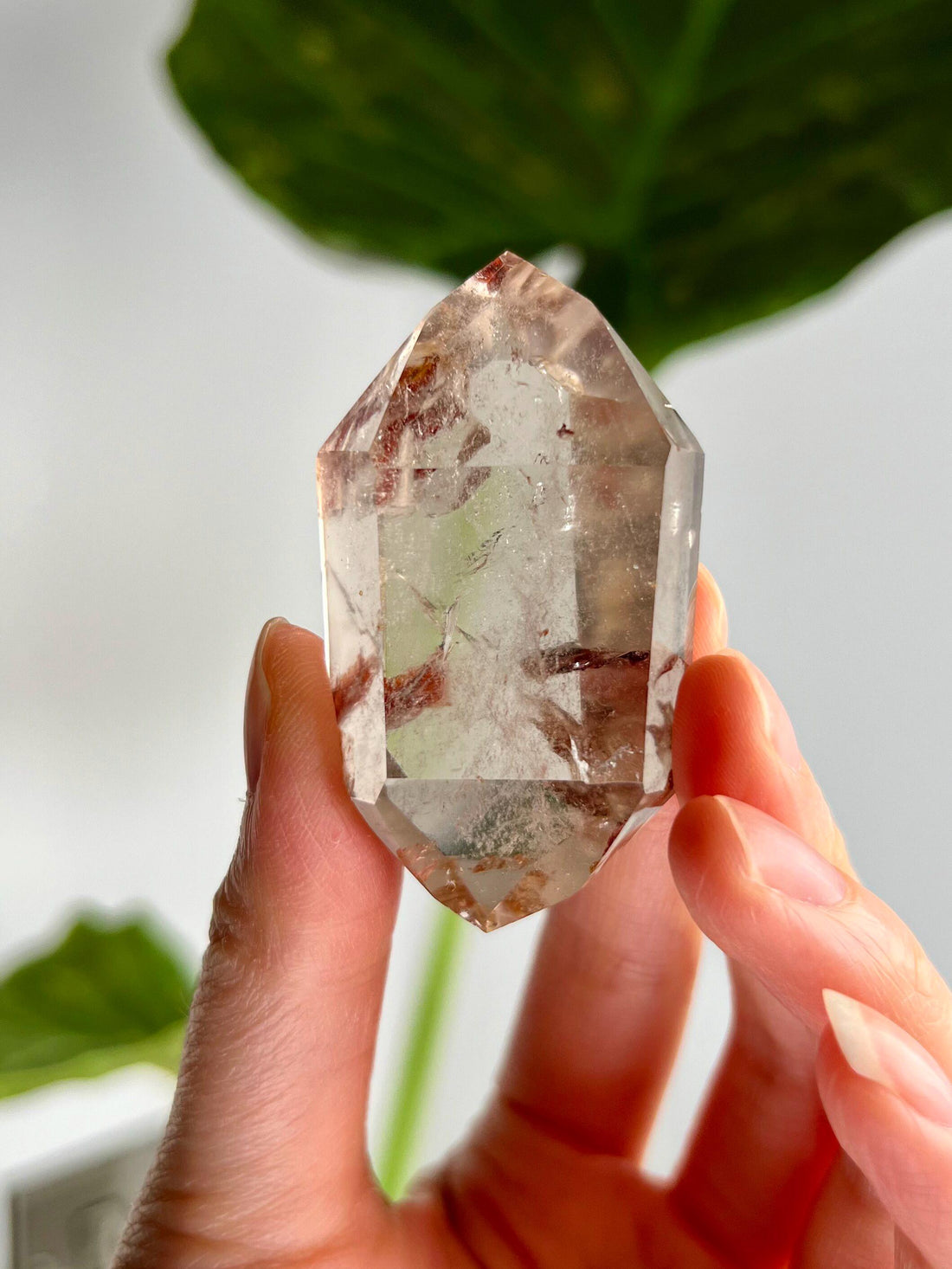 Grade A Natural Quartz DT with Hematite, Iron Inclusion with Rainbow - Double-Terminated Quartz from Diamantina, HQC35, 22g