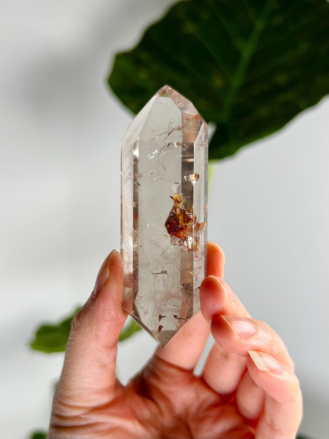Grade A+ Natural Quartz DT with Hematite, Iron Inclusion - Double-Terminated Quartz from Diamantina, HQC34, 89g