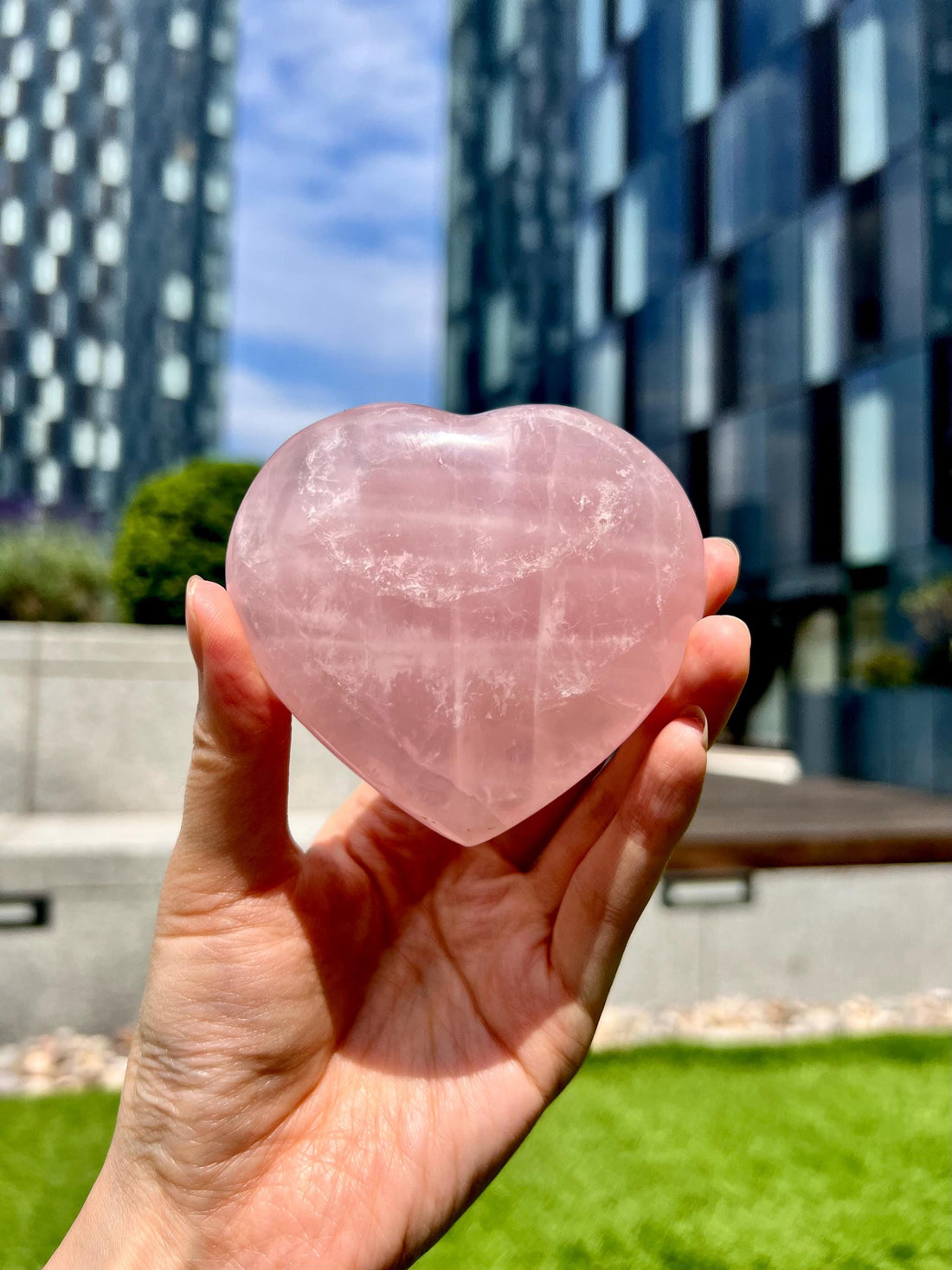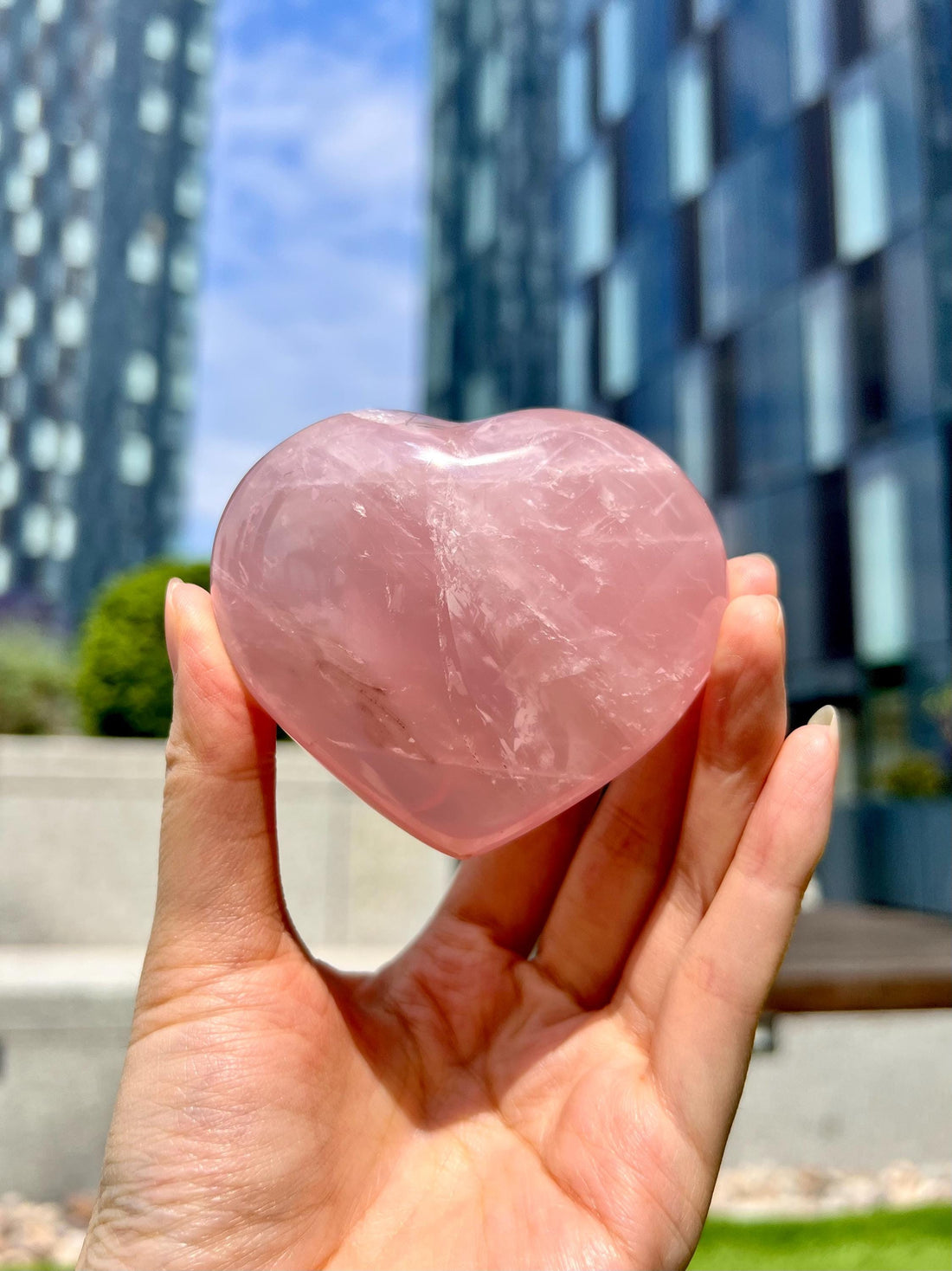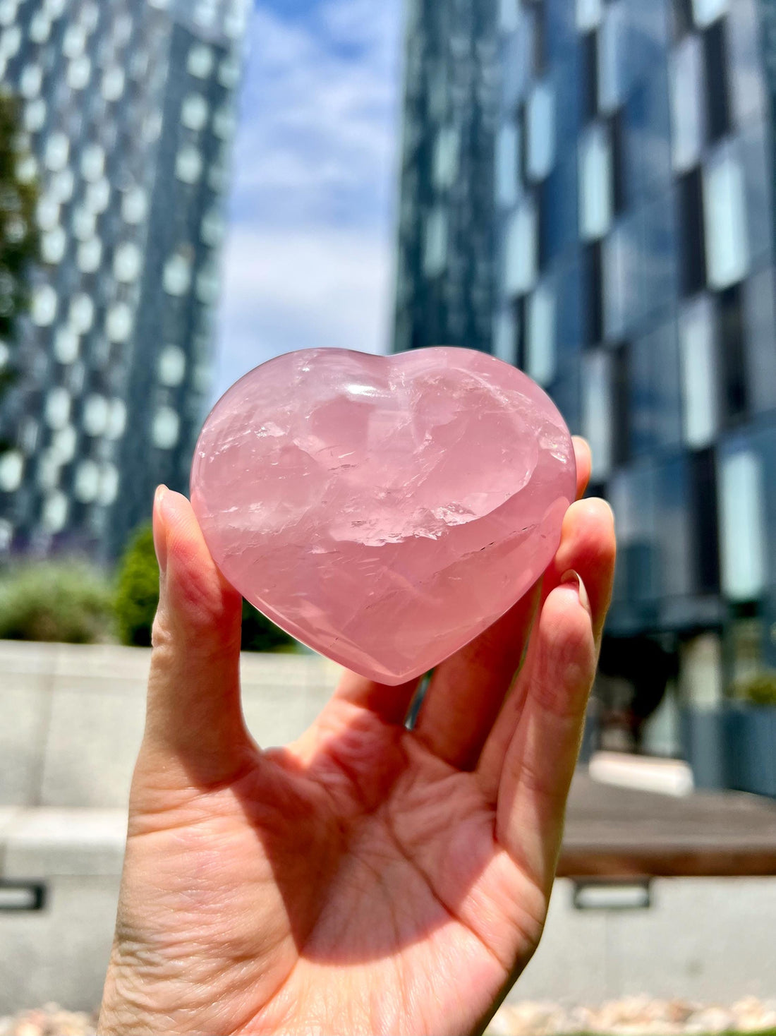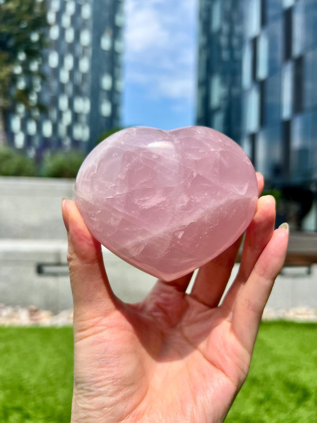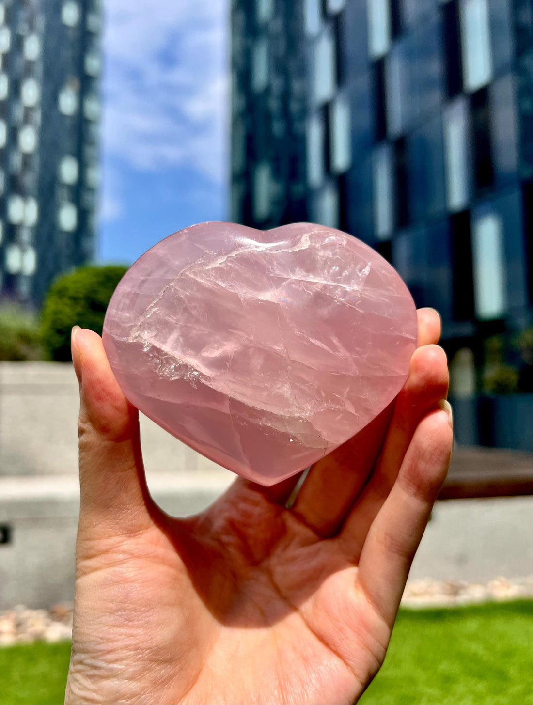 Grade AA Rose Quartz Heart with Rainbow & Starlight | High-Vibe Crystal from Madagascar | Love • Healing • Radiance, RH01, 406g