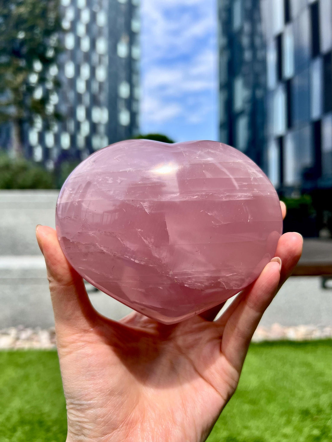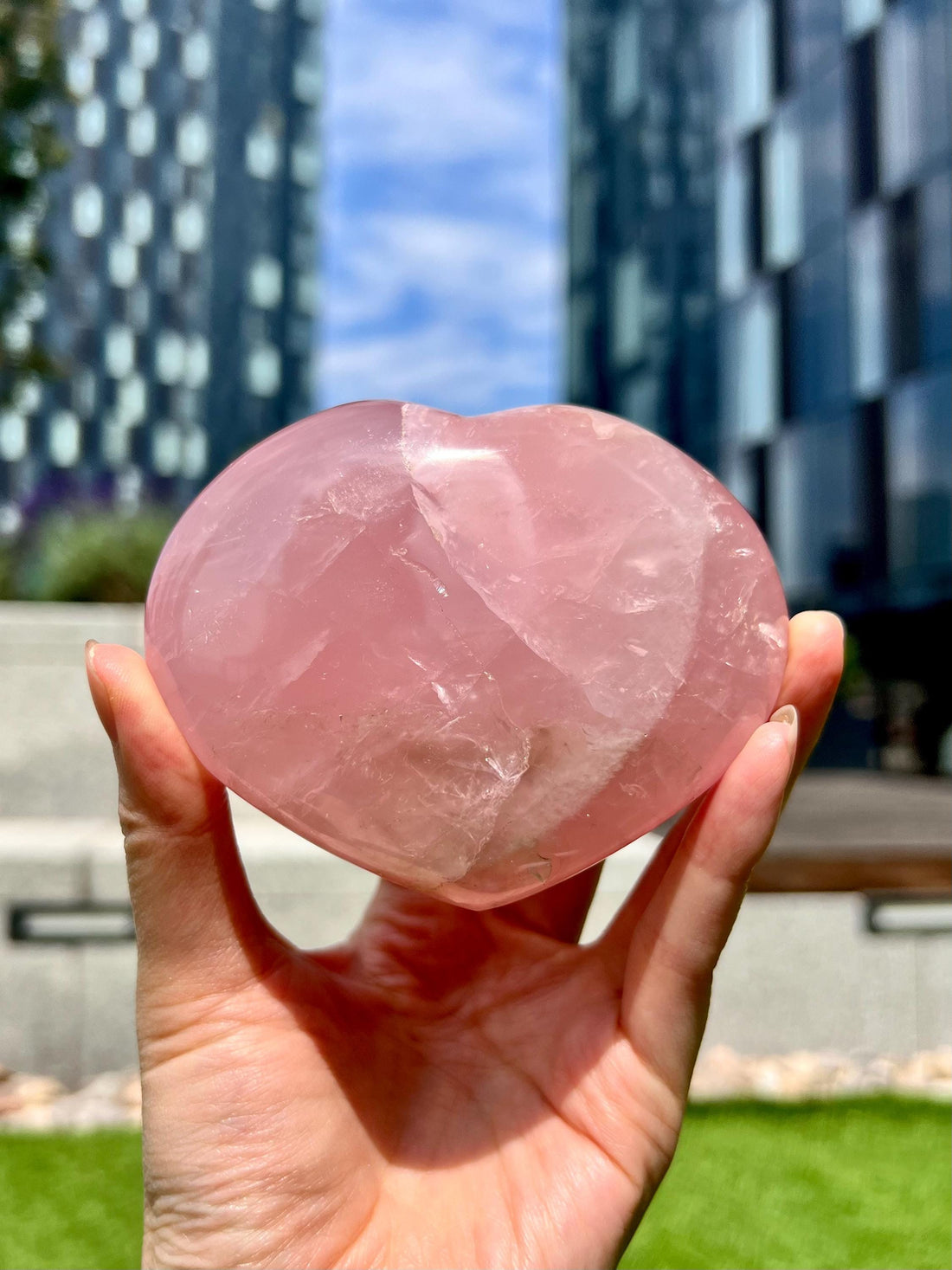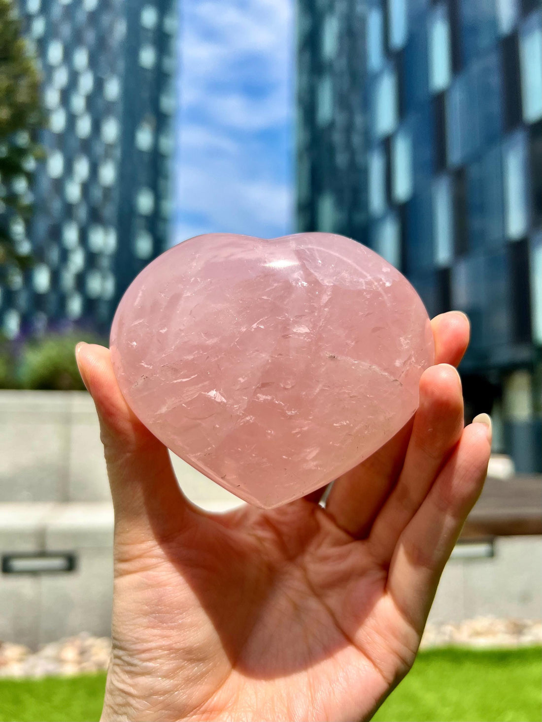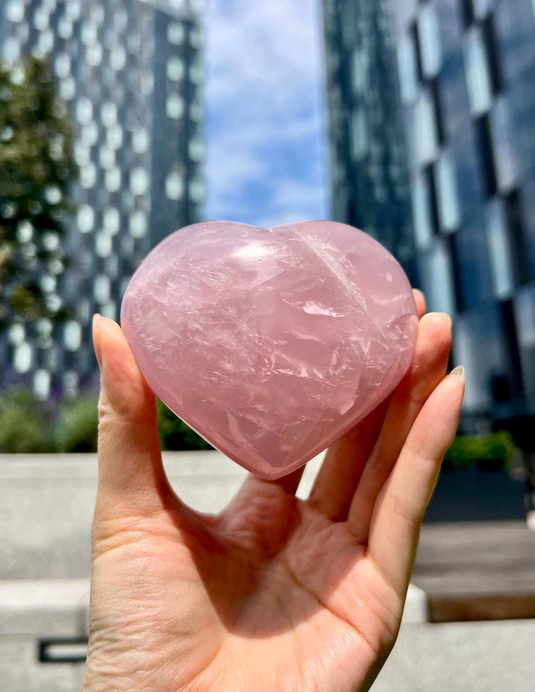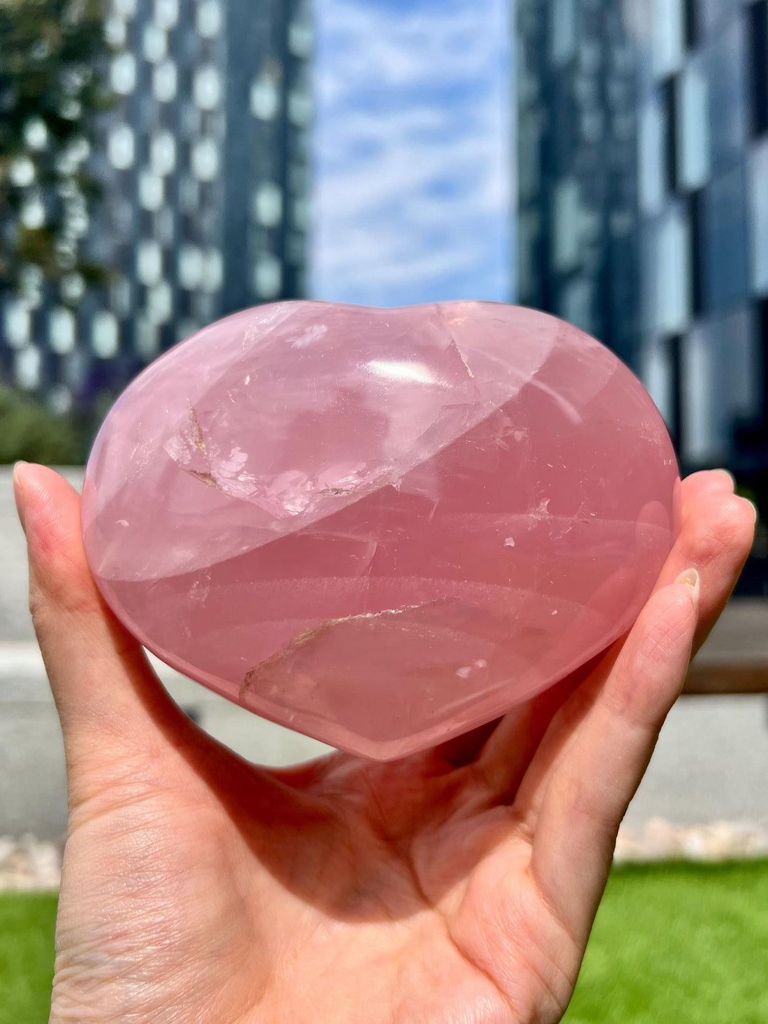 Grade AA Rose Quartz Heart with Rainbow & Starlight | High-Vibe Crystal from Madagascar | Love • Healing • Radiance, RH01, 406g