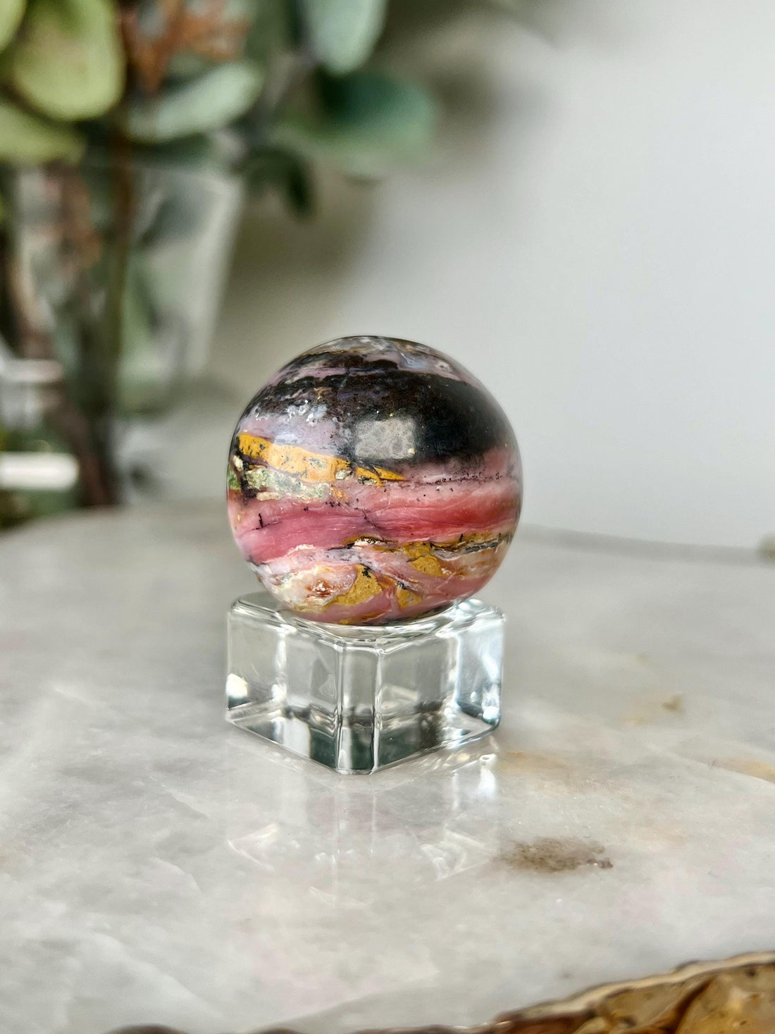 Grade A Pink Opal Sphere from Peru, Organic Hand-Polished, Stone of the Gods, Heart Healing,Spiritual Protection, Ancestral Wisdom PS23, 55g
