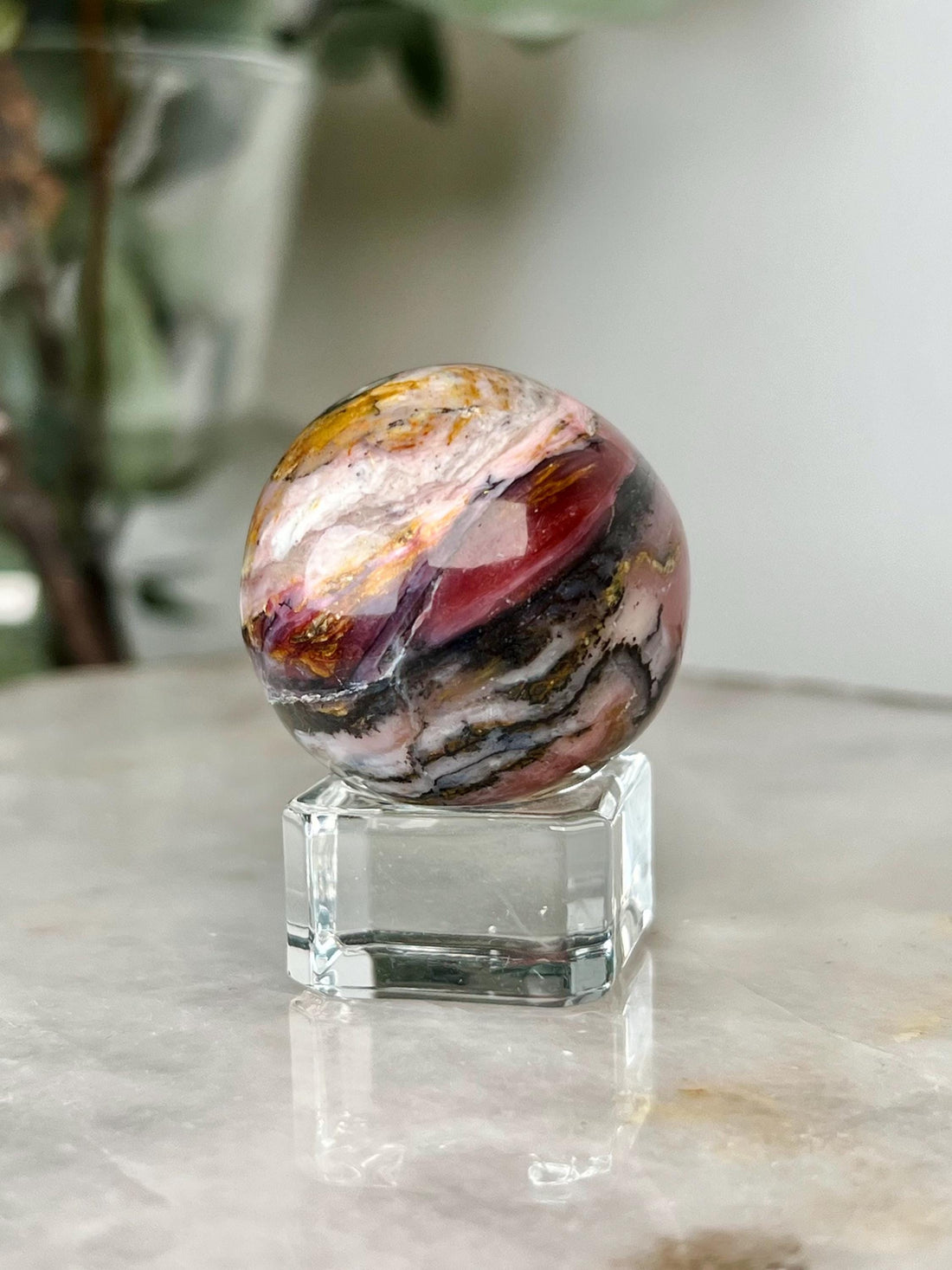 Grade A Pink Opal Sphere from Peru, Organic Hand-Polished, Stone of the Gods, Heart Healing,Spiritual Protection, Ancestral Wisdom PS16, 74g
