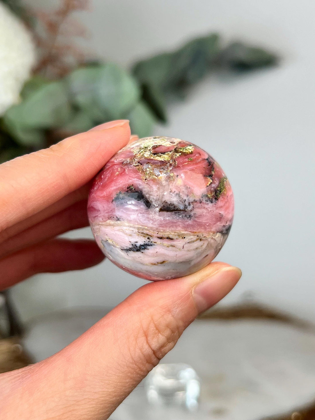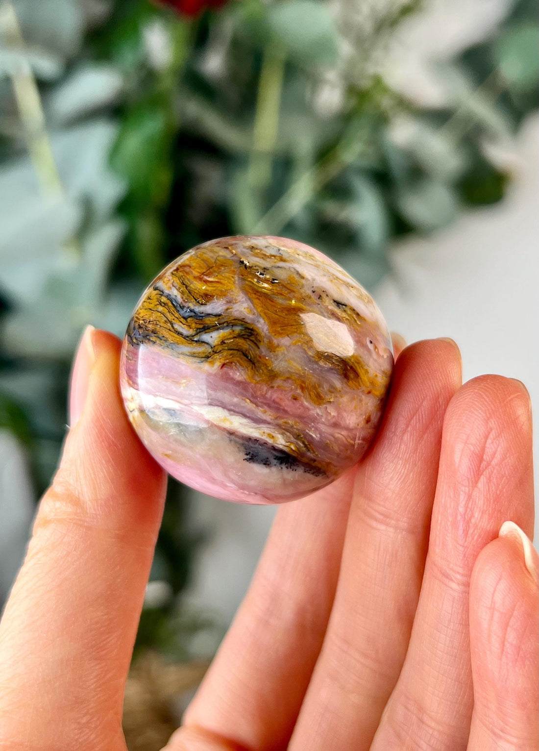 Grade A Pink Opal Sphere from Peru, Organic Hand-Polished, Stone of the Gods, Heart Healing,Spiritual Protection, Ancestral Wisdom PS21, 50g