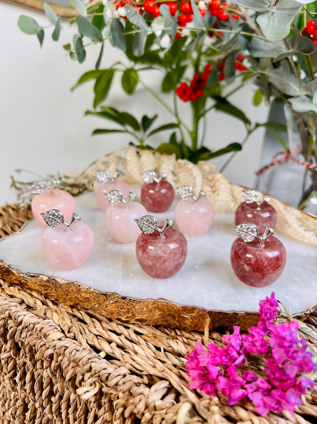 Rose Quartz and Strawberry Quartz Apples, Crystal Carving, Love and Harmony, Gift for Her