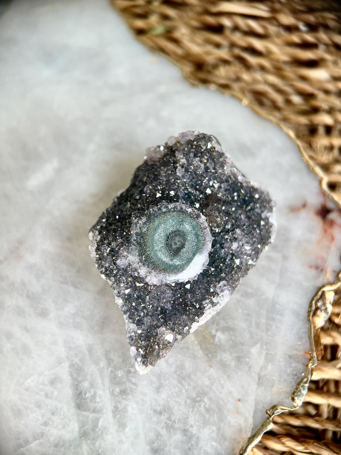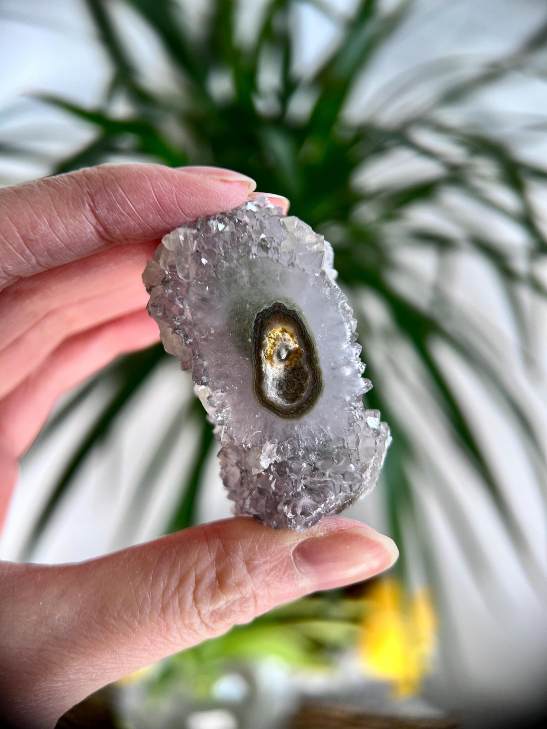 Grade A+ Natural Druzy Jasper Stalactite Eye from Uruguay – Rainbow Amethyst, Heart, Sacral and Root Chakra, US98, 68g