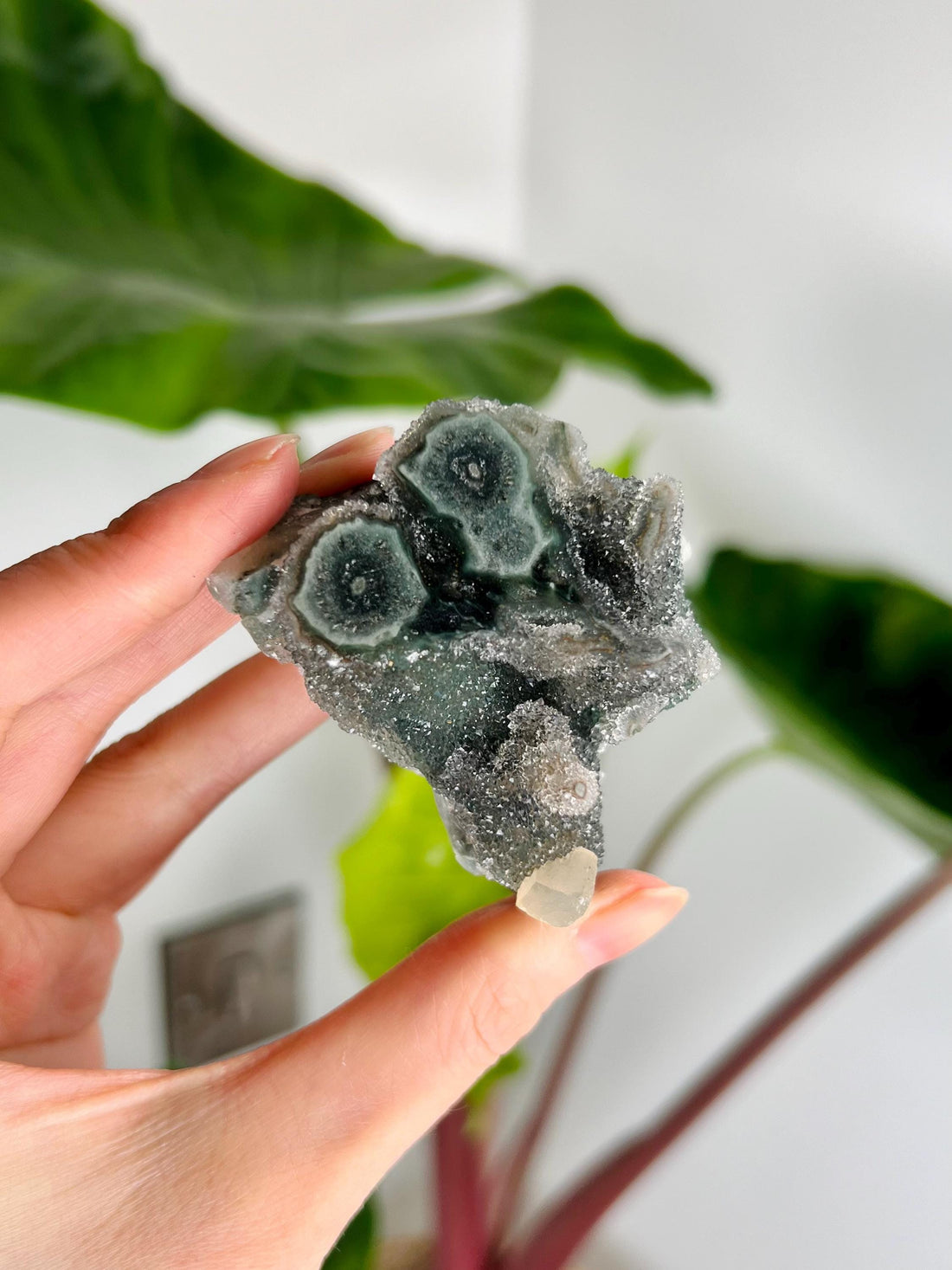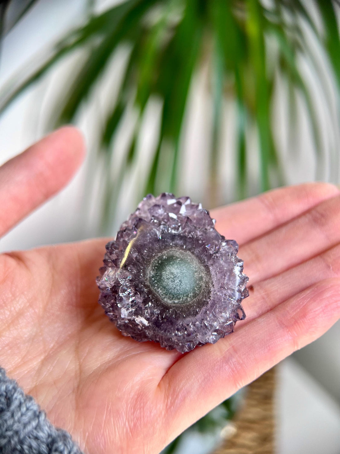Grade AA Natural Green Jasper Druzy Stalactite Eye from Uruguay – Rainbow Amethyst, Heart Chakra, US113, 80g