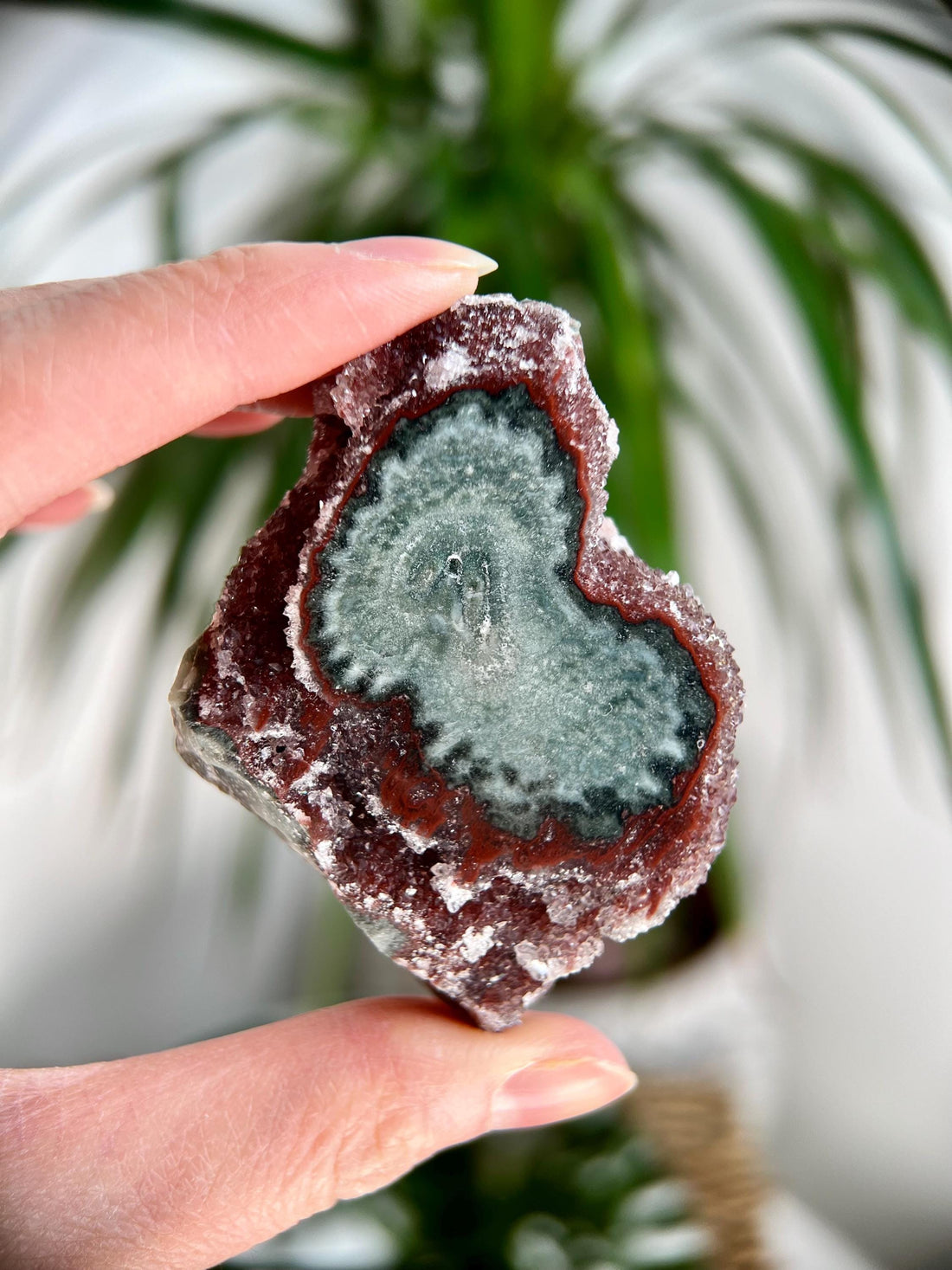 Grade AA Natural Red Jasper Druzy with Green Stalactite Eye from Uruguay – Rainbow Amethyst, Heart, Sacral and Root Chakra, US32, 95g