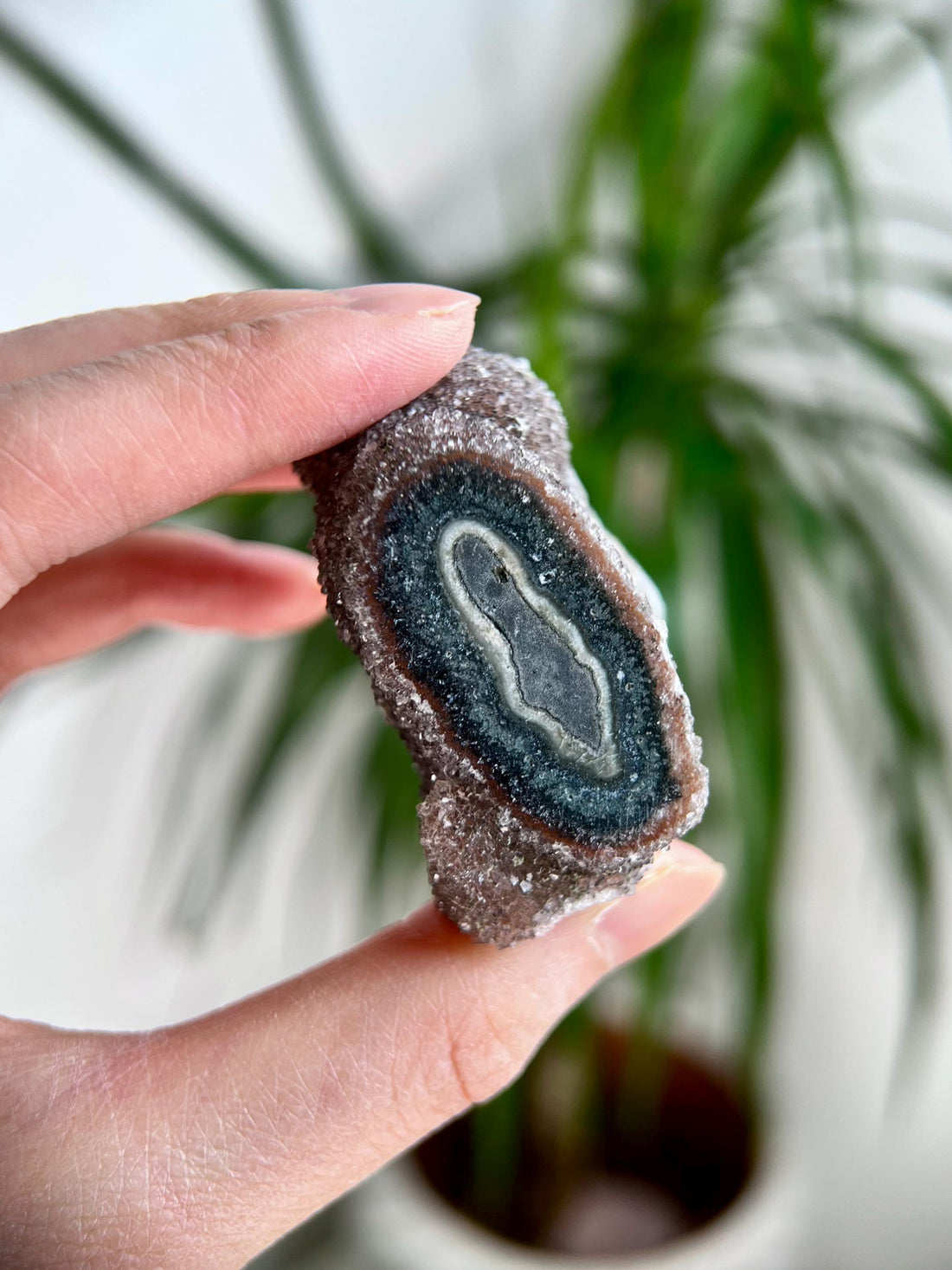 Grade AA Natural Druzy Jasper Stalactite Eye from Uruguay – Rainbow Amethyst, Heart, Sacral and Root Chakra, US104, 66g