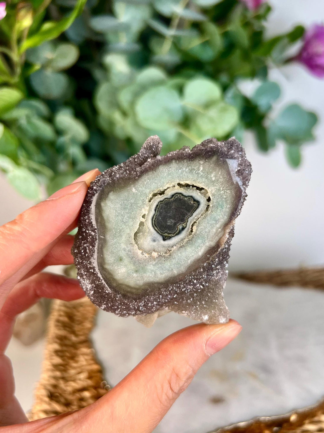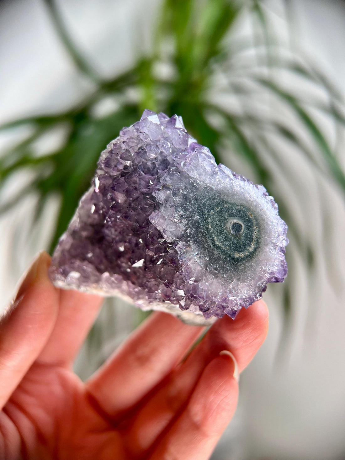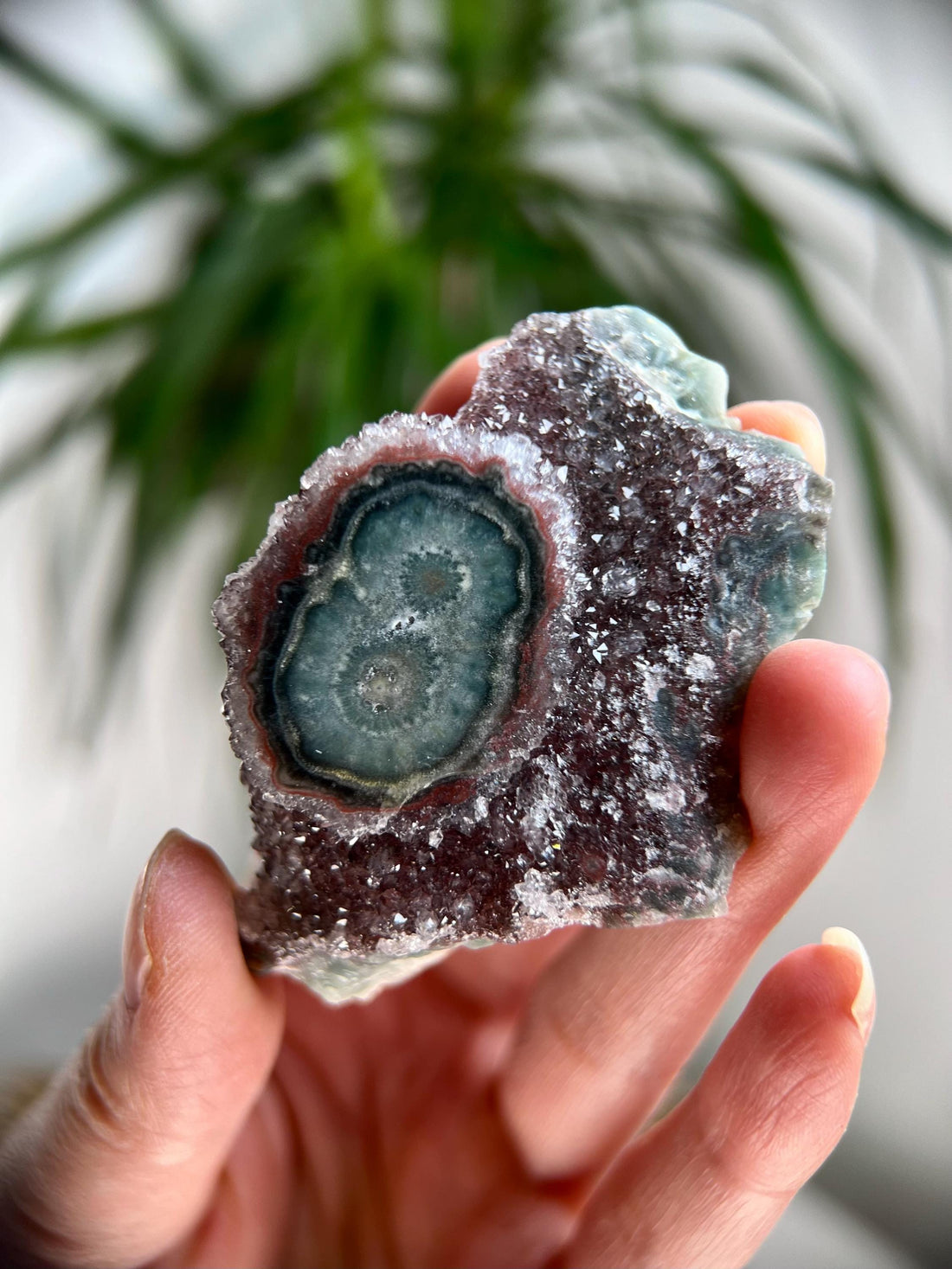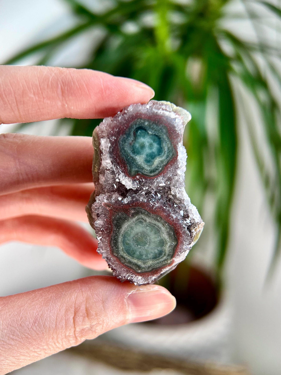 Grade A+ Natural Druzy Jasper Stalactite Eye from Uruguay – Rainbow Amethyst, Heart, Sacral and Root Chakra, US98, 68g