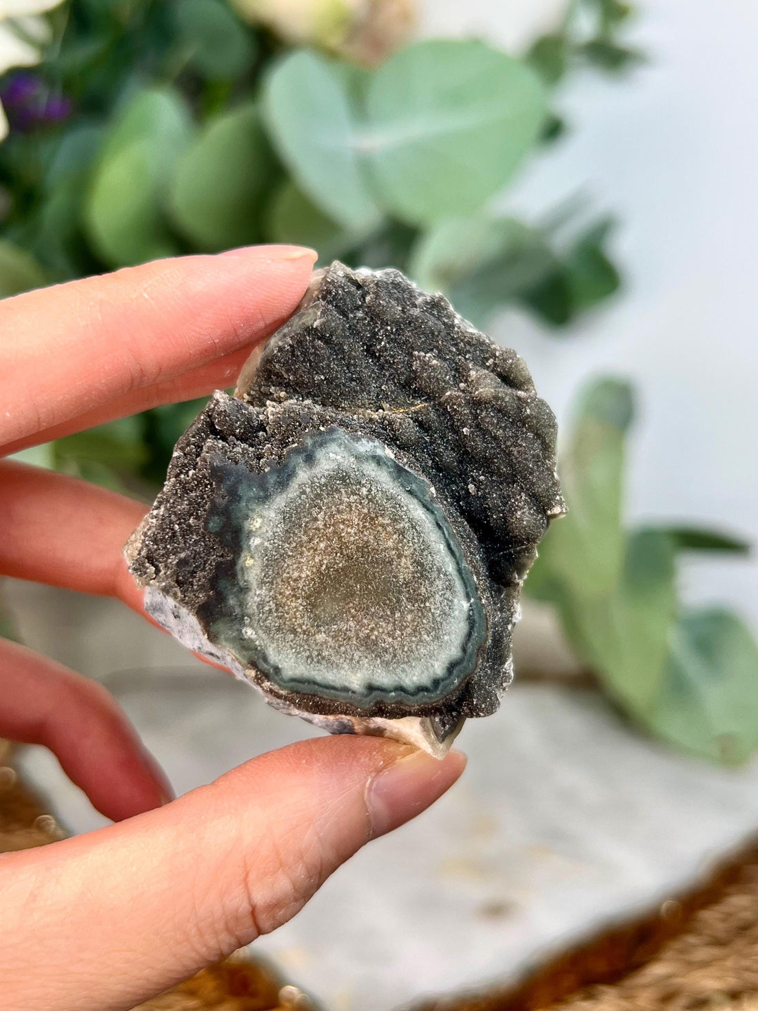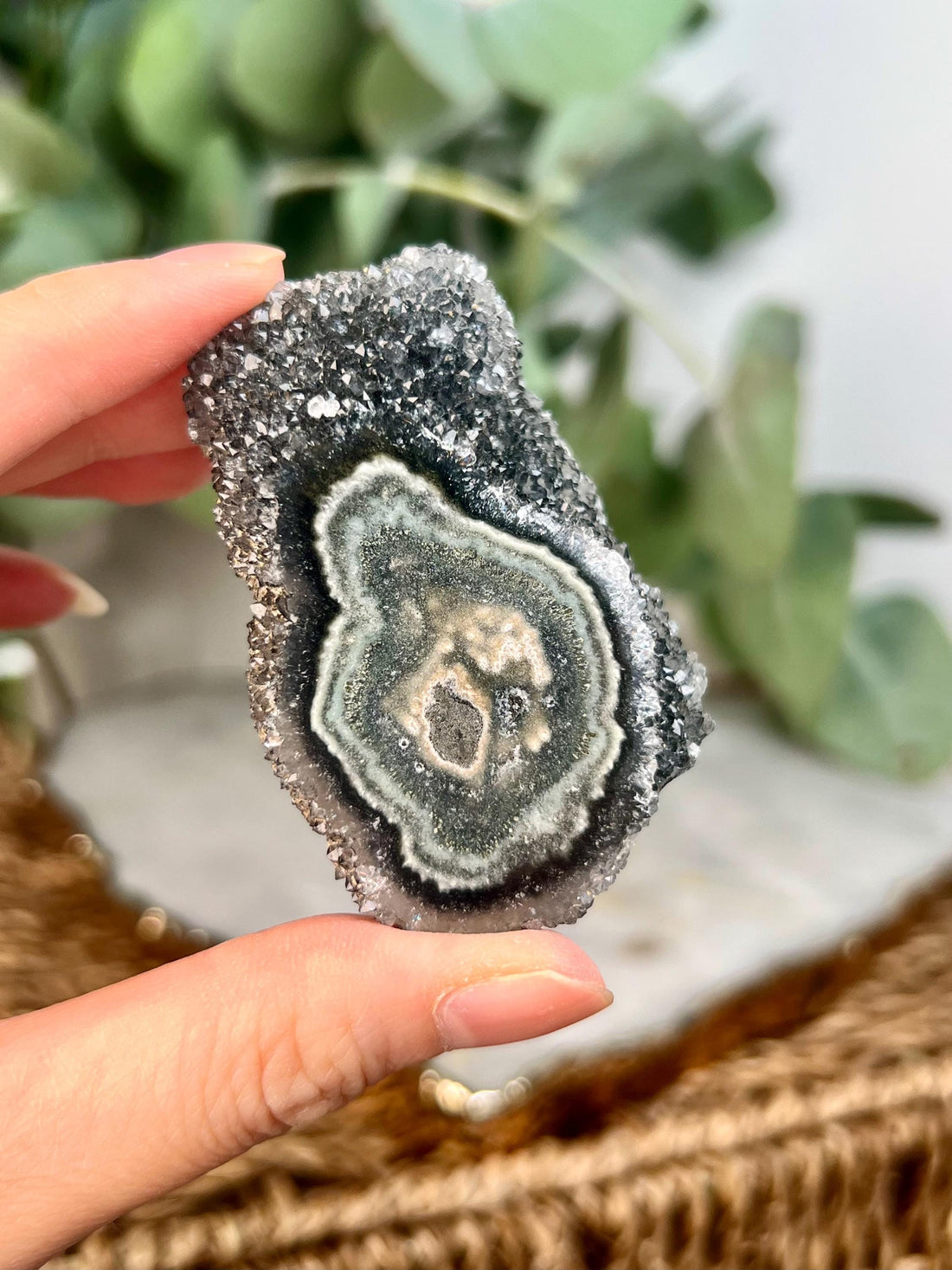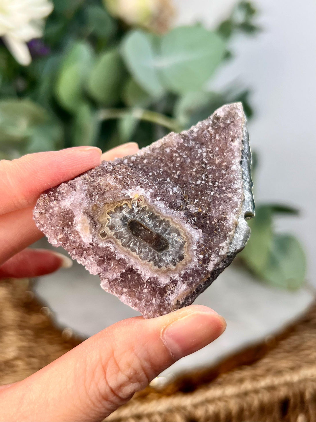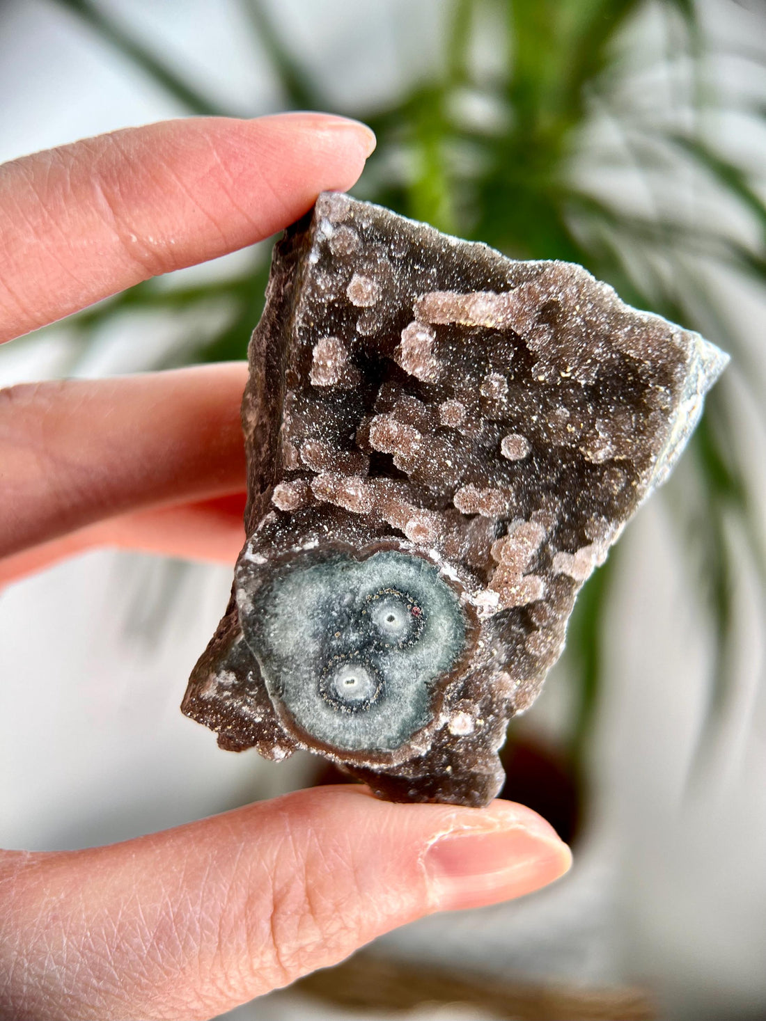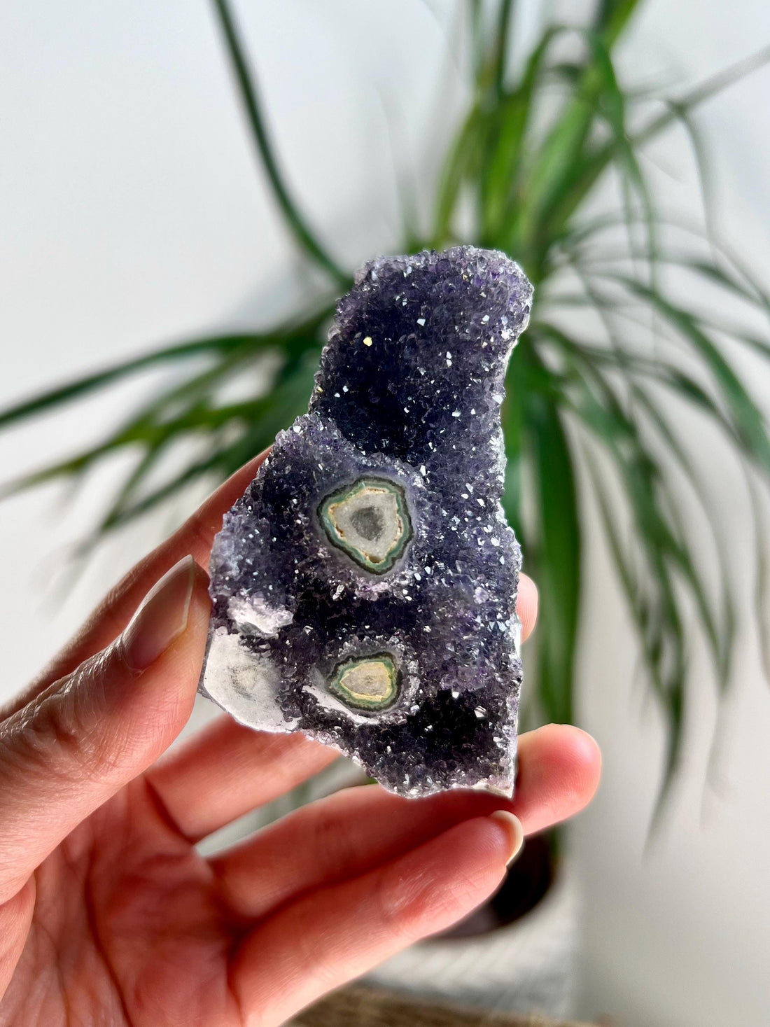 Grade A+ Natural Druzy Jasper Stalactite Eye from Uruguay – Rainbow Amethyst, Heart, Sacral and Root Chakra, US98, 68g