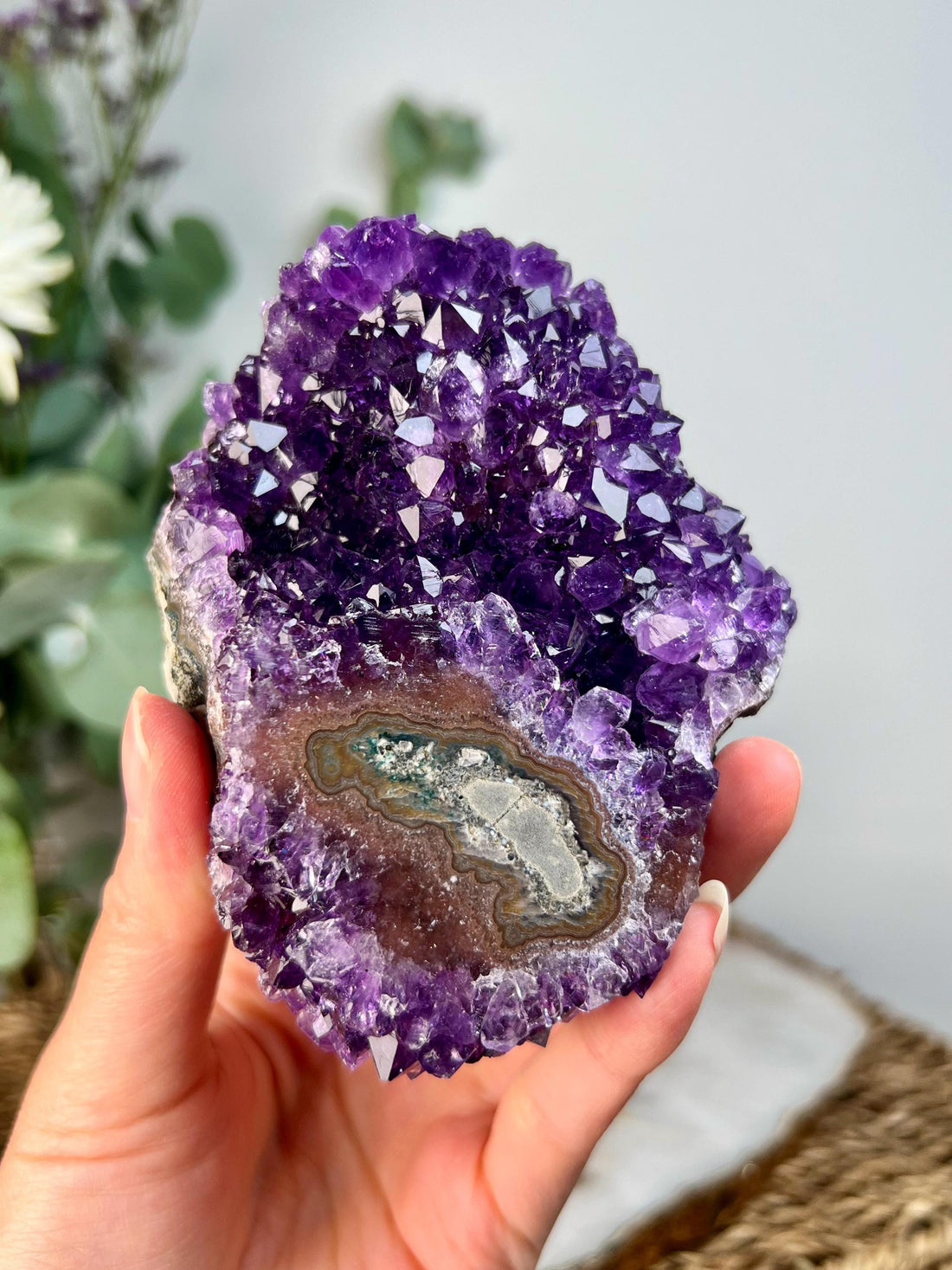 Discover the rare beauty of Uruguay Stalactite crystals—natural wonders formed over millions of years. Each piece is a unique slice of crystal history, showcasing striking formations in deep purple or vibrant rainbow amethyst hues. Known for their heart-opening and intuitive properties, these high-frequency gems radiate peace, clarity, and divine harmony. All pieces are ethically sourced, hand-selected for exceptional quality, and energetically activated to support your healing journey.