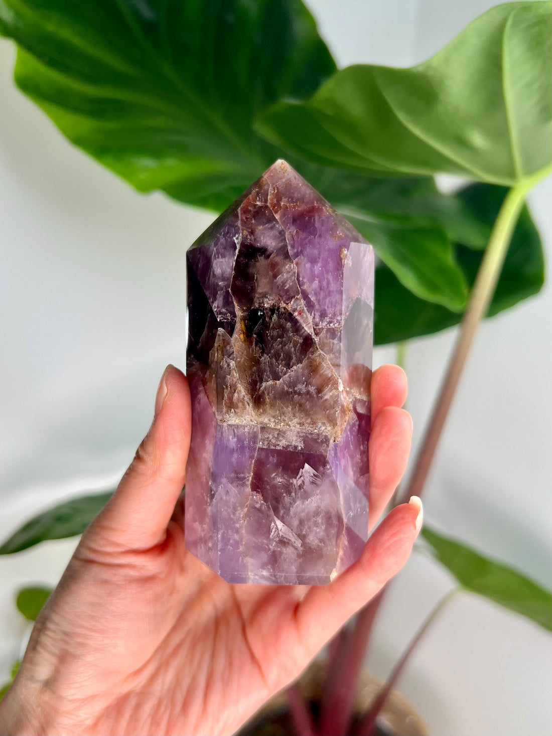 Grade A+ Phantom Amethyst Quartz Tower with Rainbows and Iron | Energetically Activated PA17, 43g DISCOUNTED for Minor Chip on Point