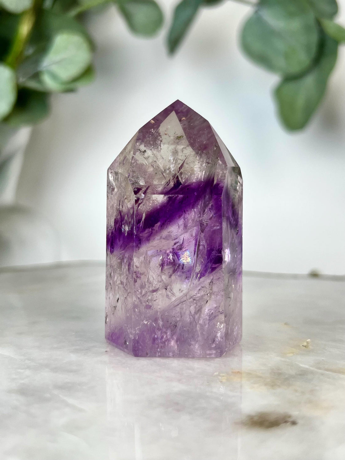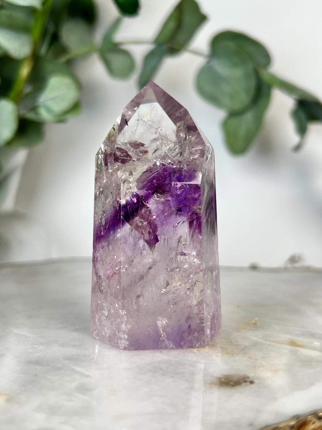 Grade A+ Phantom Amethyst Quartz Tower with Rainbows | Bahia Brazil | Energetically Activated PA09, 97g