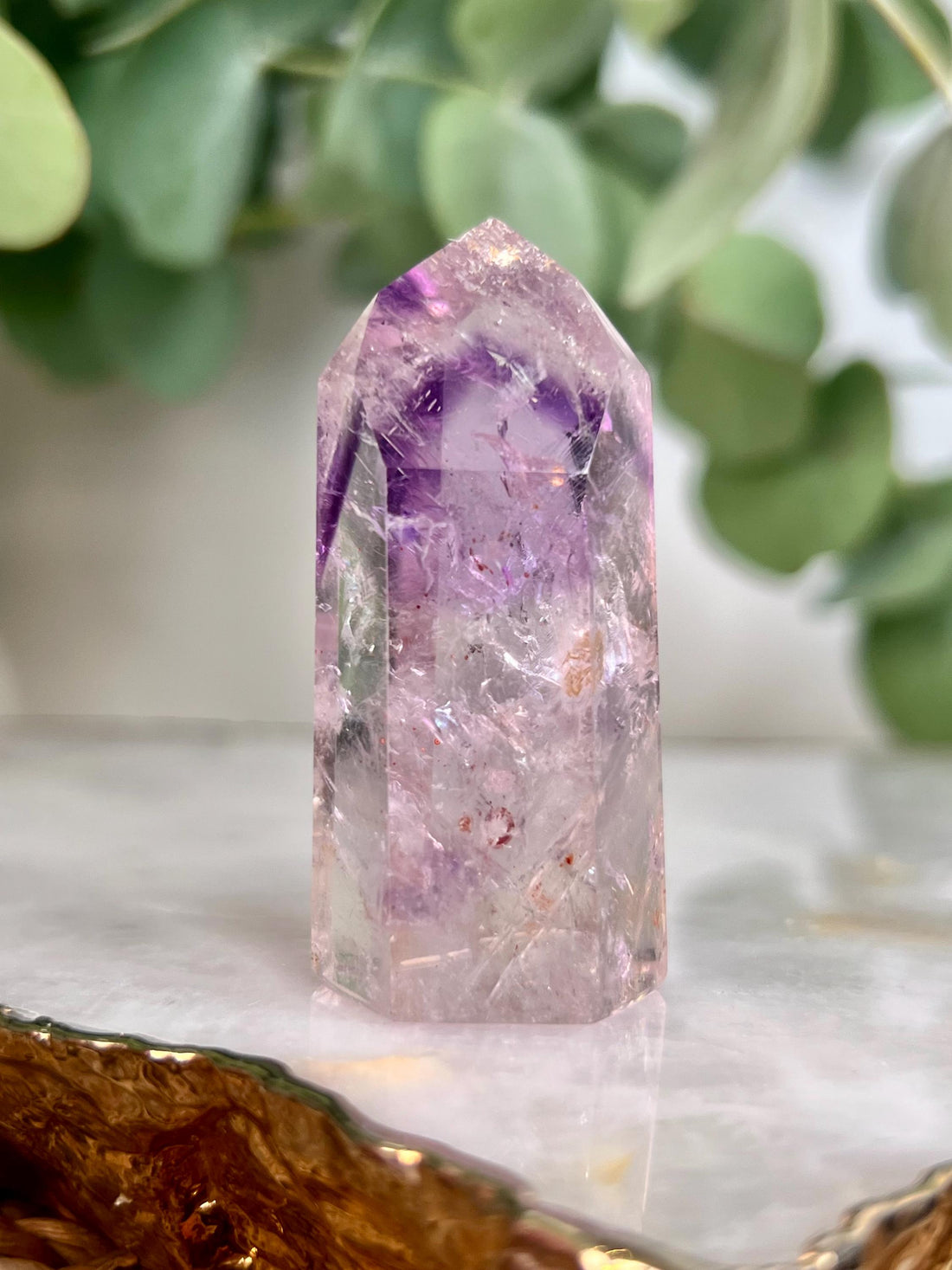 Grade A+ Phantom Amethyst Quartz Tower with Iron, Hematite and Rainbows | Bahia Brazil | Energetically Activated PA29, 59g