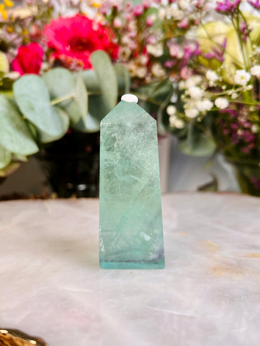 ADOPTION- Grade AAA Rainbow Fluorite Tower 81g, Green Fluorite, Discounted for minor shipping damage