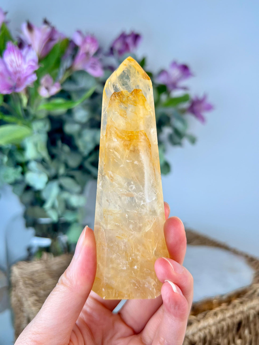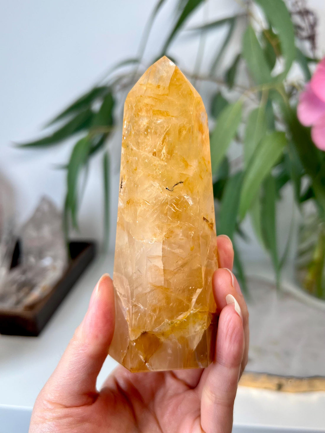 Grade AA Golden Healer Tower - Natural Hematoid Quartz for Ultimate Healing, Abundance, and High Energy Frequency GHC32, 239g